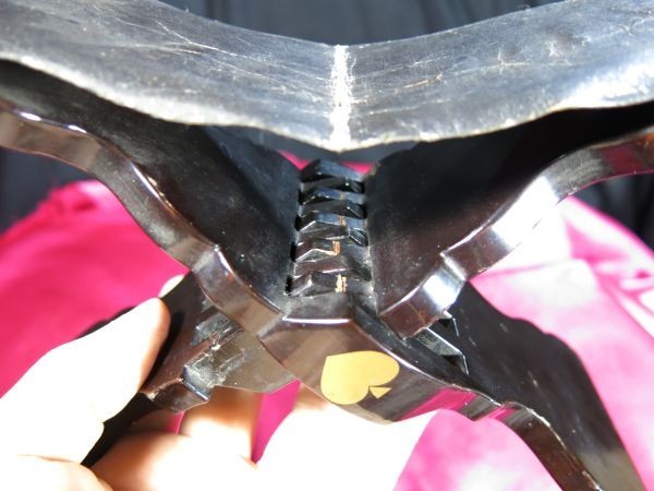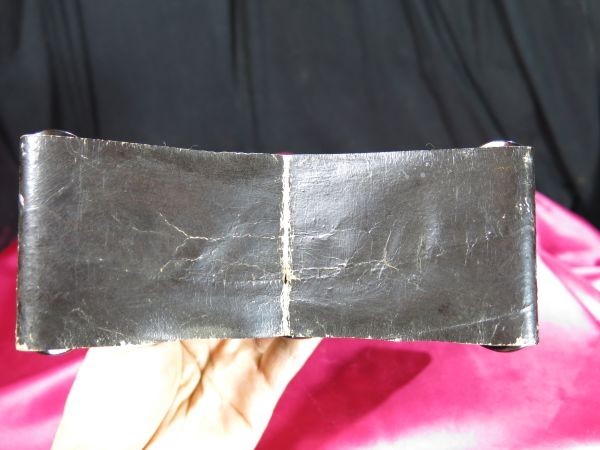 このような 革と黒塗りで出来た旅枕は 「非常に」 珍しいと考えております。