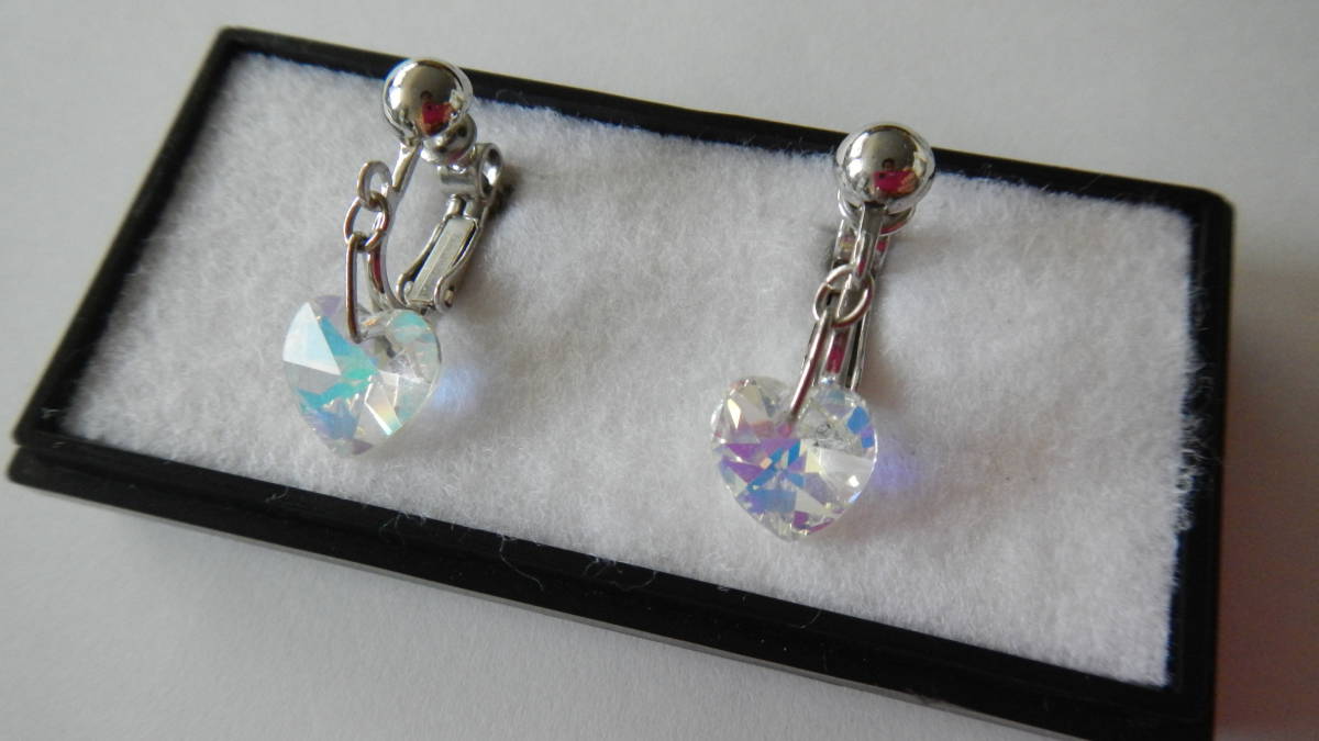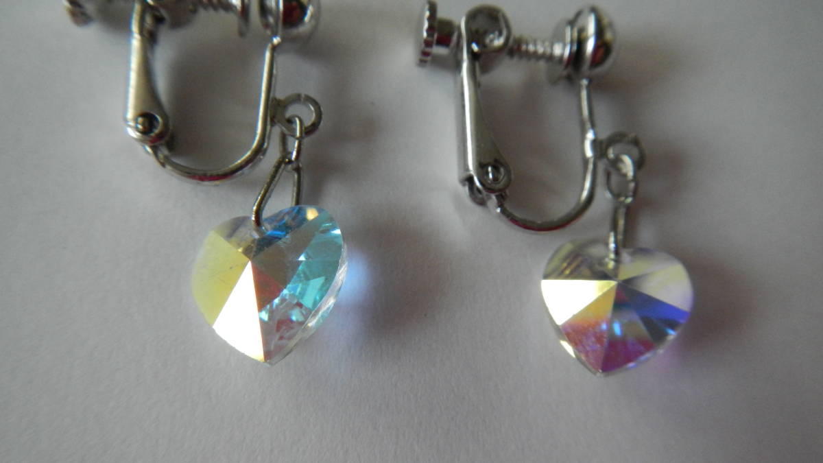 イヤリング 【管理番号W42】 ハート型 七色に輝く シンプル オシャレアクセサリー 綺麗系 レディース 箱なし 耳飾り