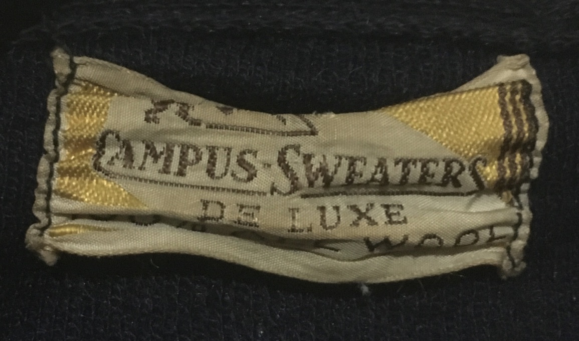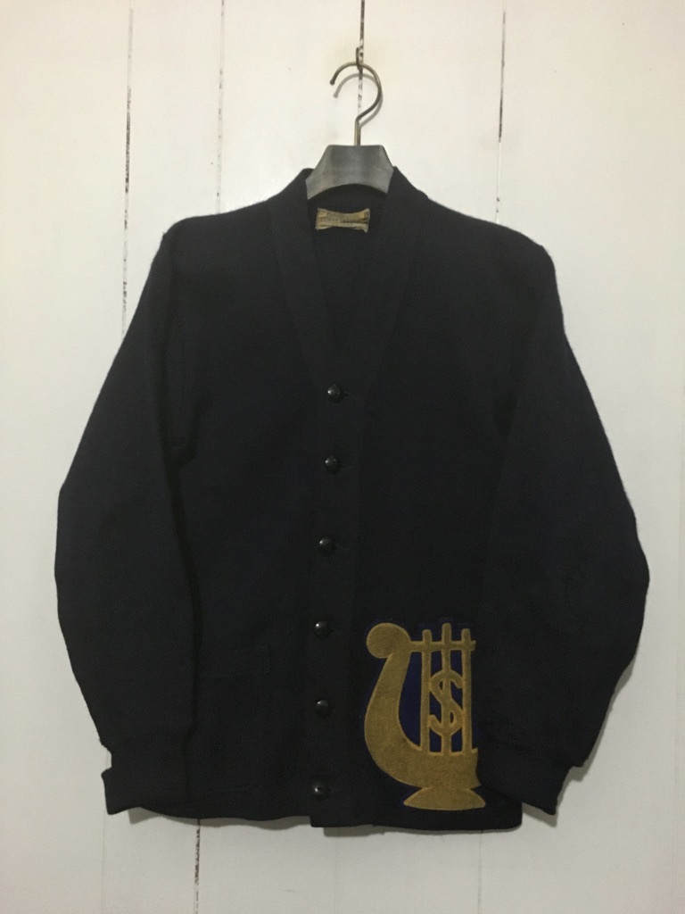 50's 60's ビンテージ☆CAMPUS SWEATERS レタードカーディガン サイズ約S-M 36-38 紺 ネイビー ワッペン 圧縮ウール