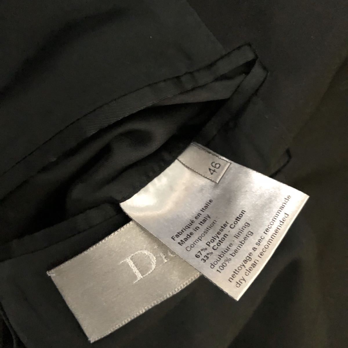 この他にもハイブランド等の商品を多数出品中です。 ●品名 : Dior homme / タキシード・ジャケット ●色柄 : ノワール(ブラック) ●産地 : イタリア ●定価 : 30万円程度 ●状態 : 8/10 (3回程度の着用) ●素材 : 【表地】ポリエステル67%、コットン33% 【裏地】ベンベルグ100% ●付属 : 正規ハンガー、正規ガーメントケース(メッシュ素材) ●サイズ : 46 (メンズS-Mサイズ相当) 着丈(襟下~背裾) : 65cm 肩幅(肩端~肩端) : 41cm 身幅(脇下~脇下) : 47cm 袖丈(肩下~袖下) : 70cm 【補足説明】 ●あのエディ・スリマンがクリエーティブ・ディレクターだった頃の貴重なジャケットです。 ●前身頃は1つボタン、袖口は4つボタン(全てクルミボタン)。サイドポケット、内ポケットあり。背中にベントなし。 ●エリは光沢のあるサテン地のショールカラーで、タキシード仕様になっています。 ●このブランドらしい細身のキレイなシルエットかつショート丈なので、日本人の体型でもスタイリッシュに着用できます。 ●背中にウルフ(狼)のワッペンが施されたものも販売されましたが、本商品は背中に何もないシンプルな方の商品です。 ●発売時には、木村拓哉(キムタク)氏やスタイリストの祐真朋樹氏・野口強氏もよく着用されていました。 ●タキシードなのでフォーマルな場面から、デニムに合わせてカジュアルダウンするなど、幅広い場面で活用できます。 |
