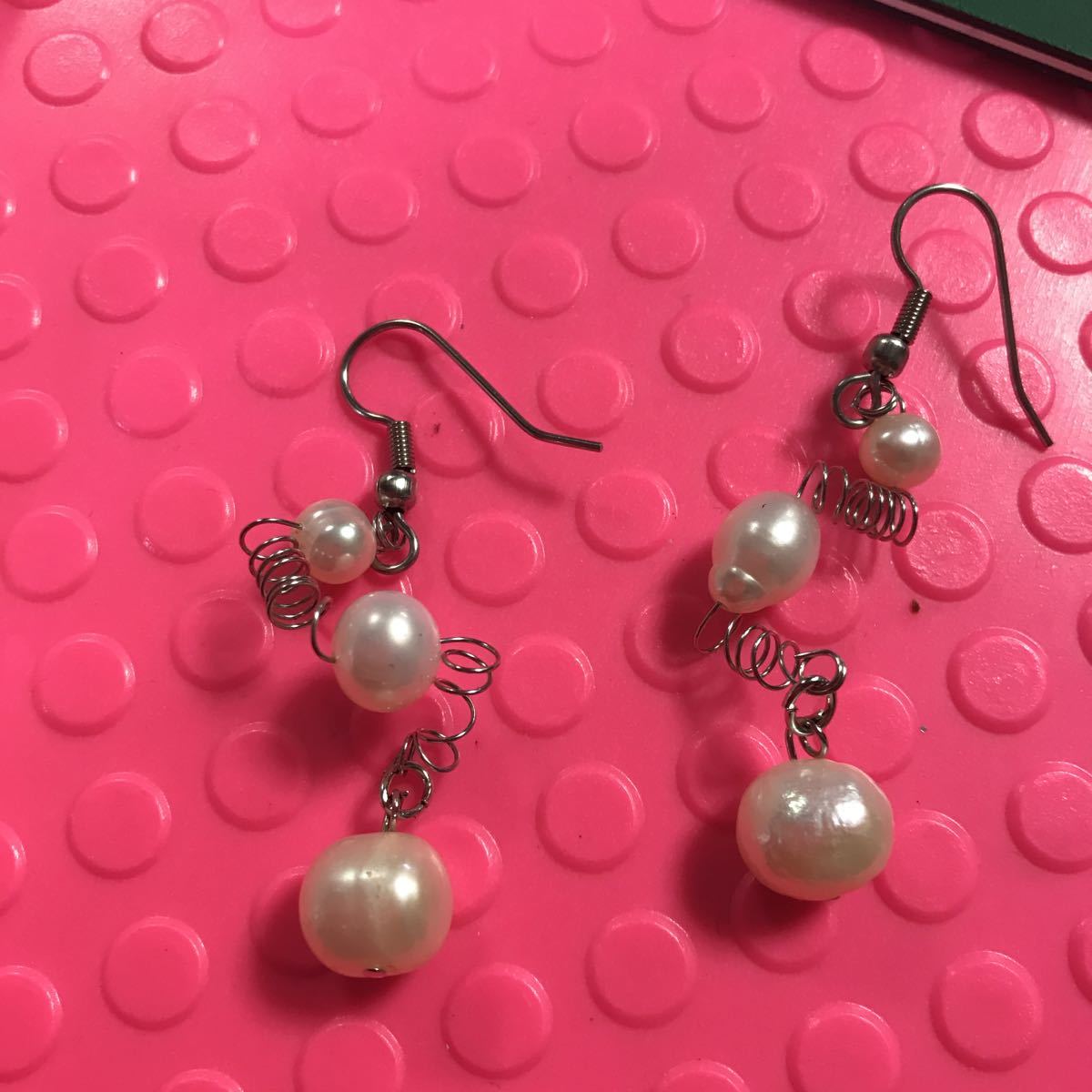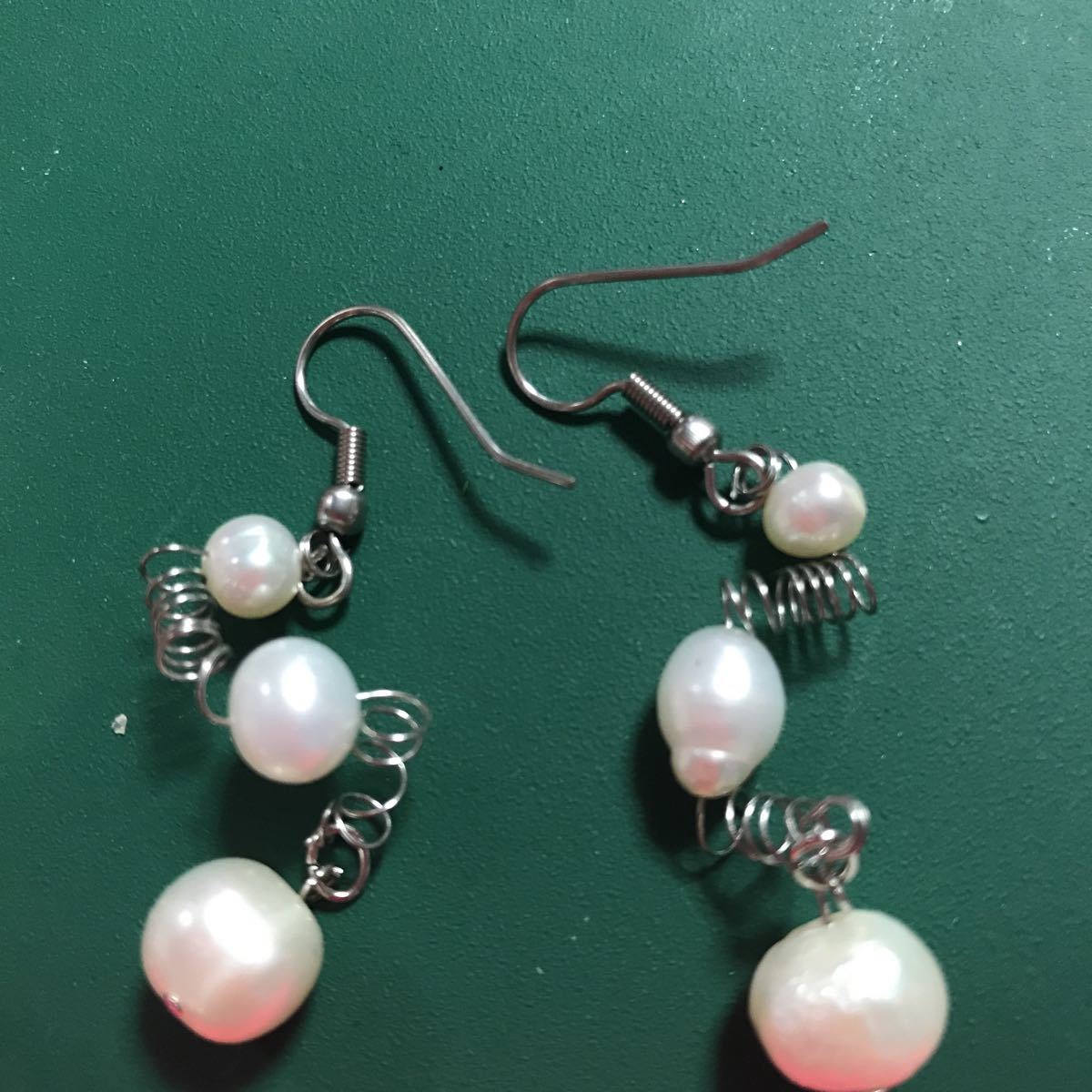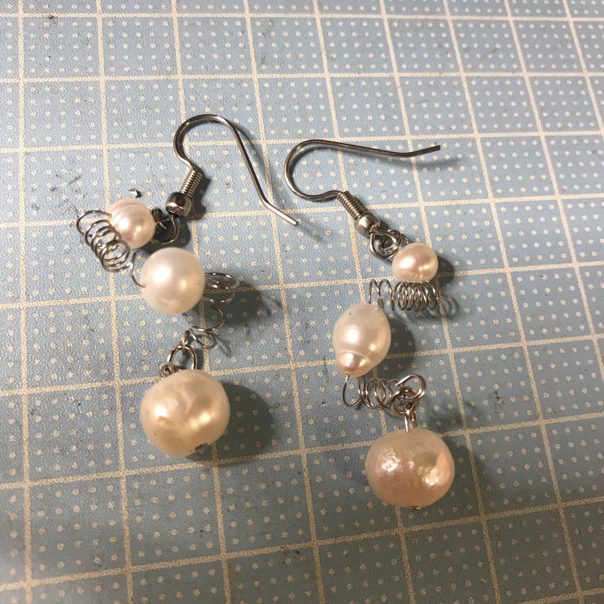バロック型なので、いびつな形で傷へこみございます。ステンレスのワイヤーで繋ぎました。フックもステンレスです