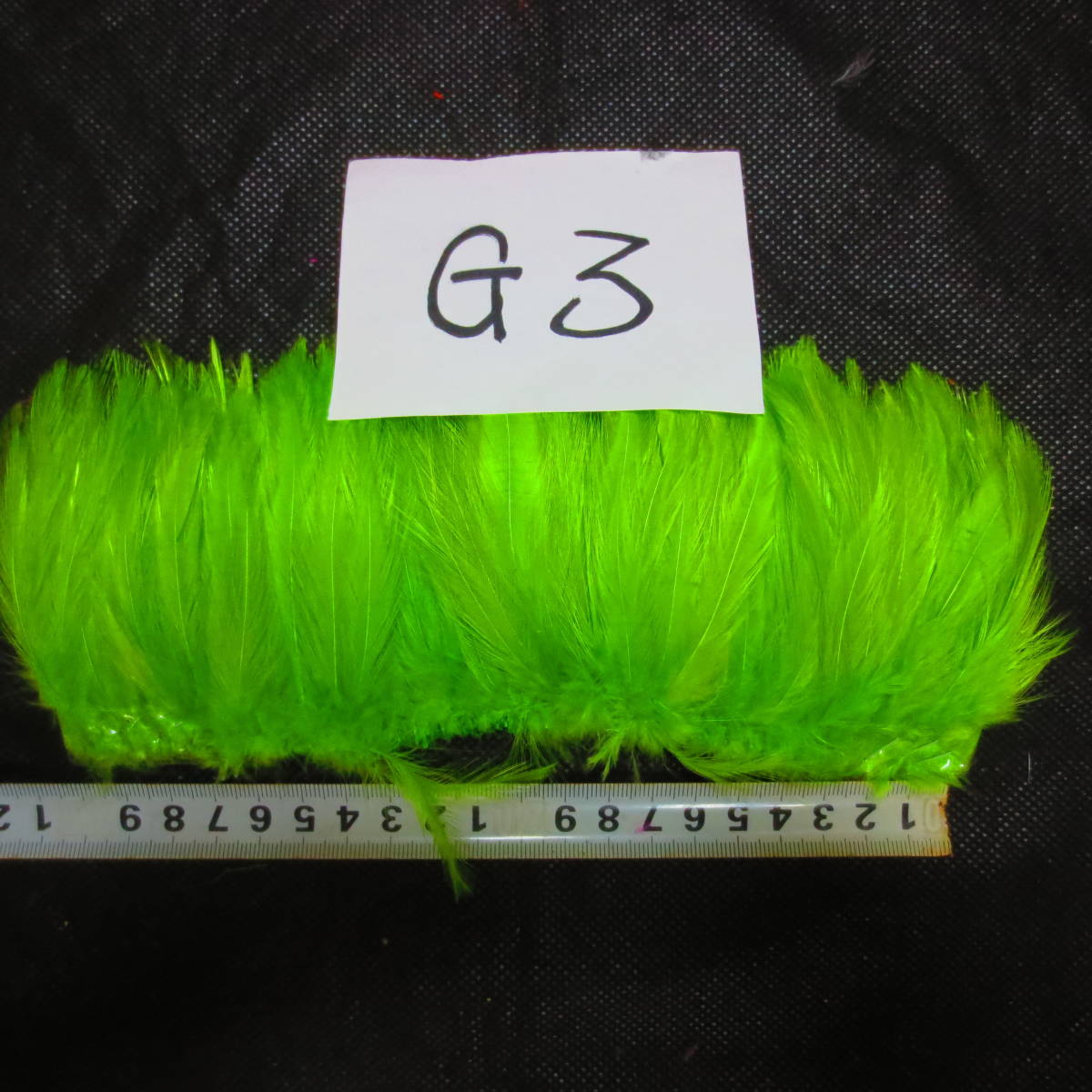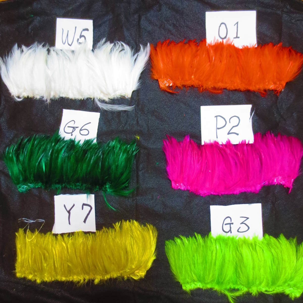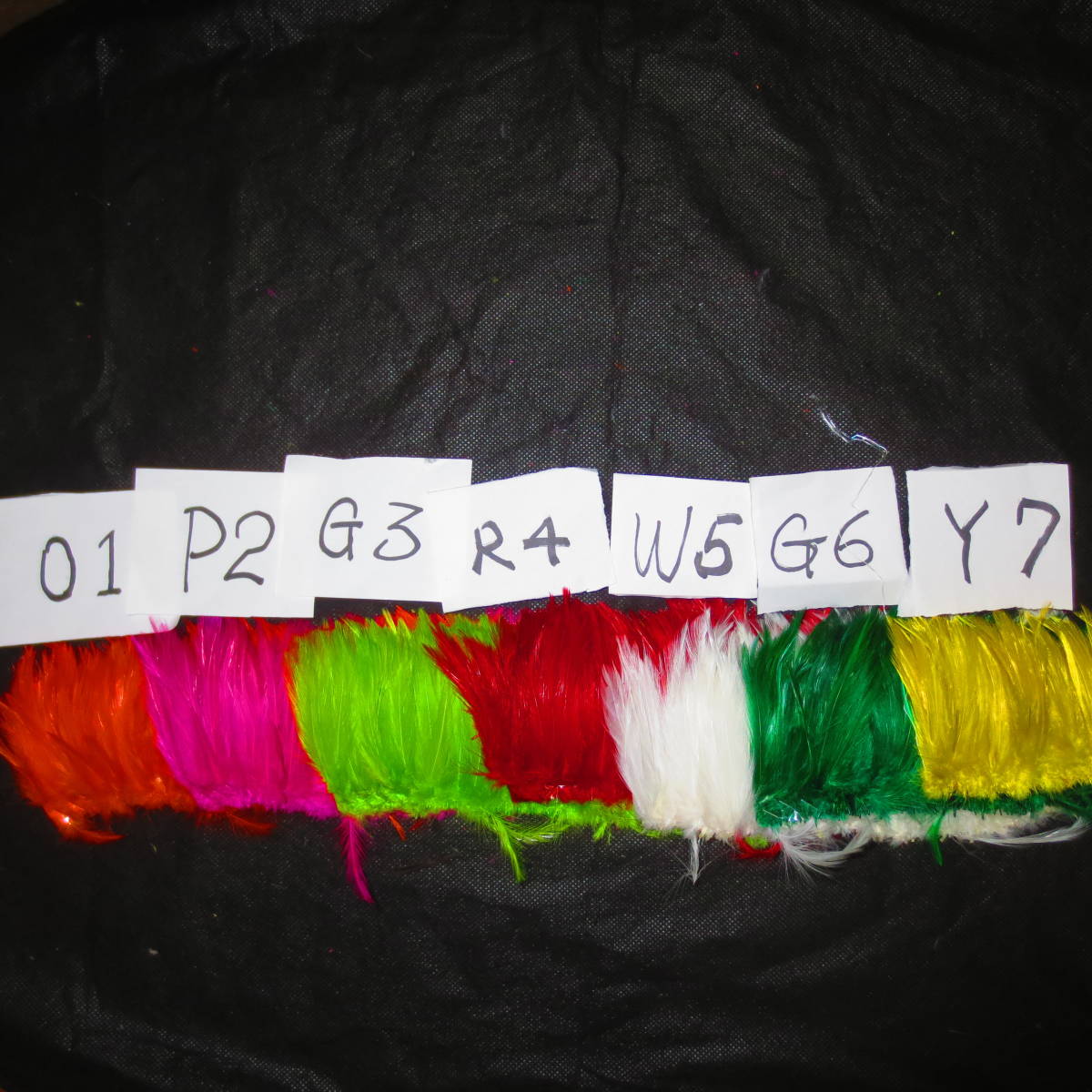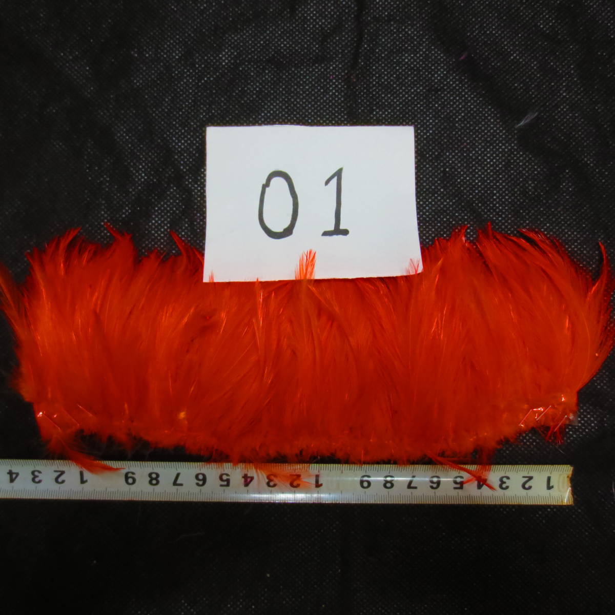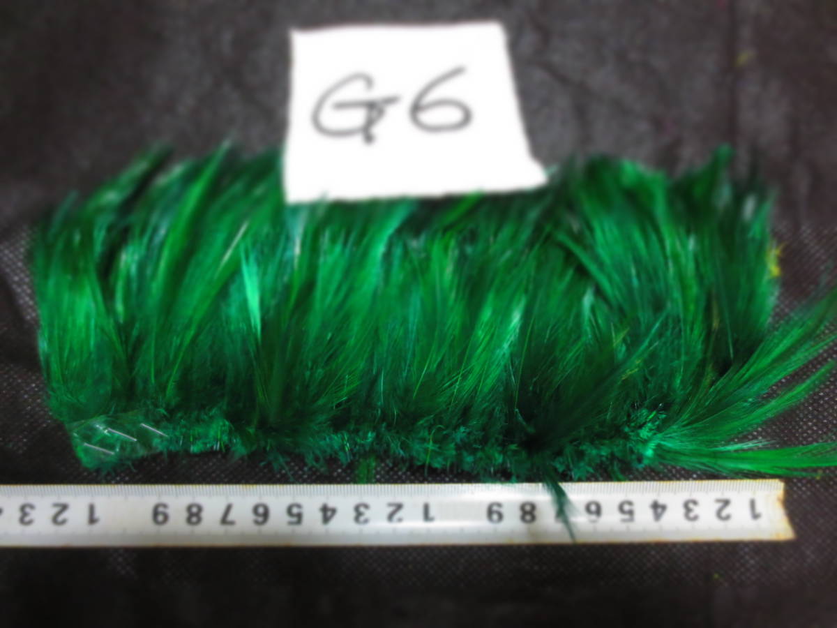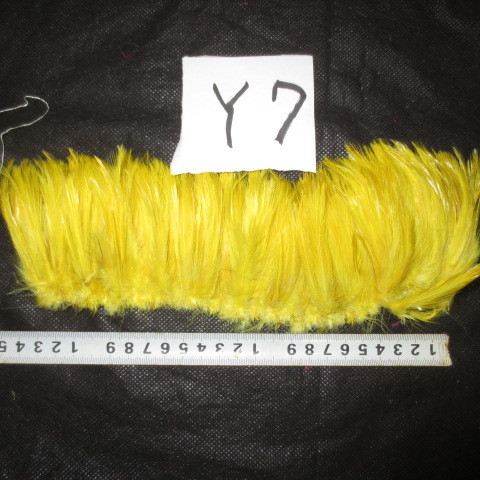 お客様の手元にお届けになるのは、写真とほぼ同じ色同じサイズの同等品で、20cm長さの羽毛の帯1本分です。(写真4-10は各1本帯の羽根の見本です、1本帯の羽根の数は100本以上です)全部7色がありますが。お落札後お好きな色を指定してください。
