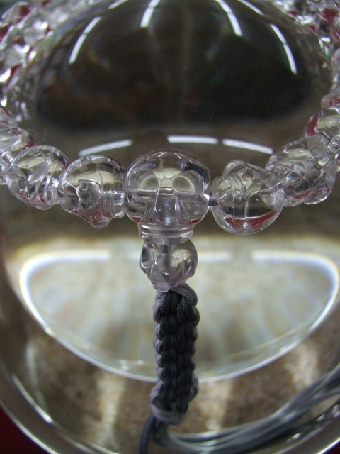 水晶 総 骸骨彫 ドクロ 組紐房仕立 念珠 数珠 仏壇仏具 風水 玉のサイズ親玉16ミリ、主玉12ミリ、小玉10ミリ