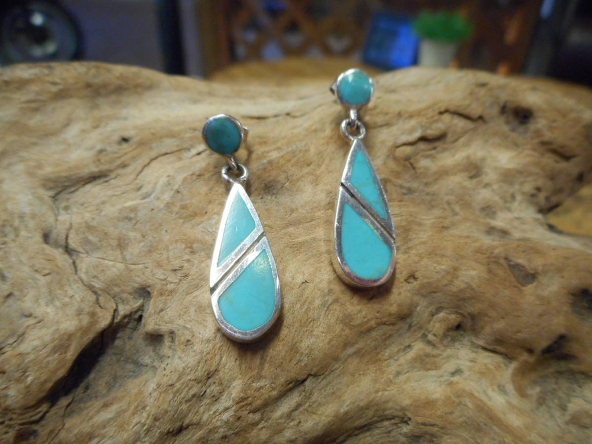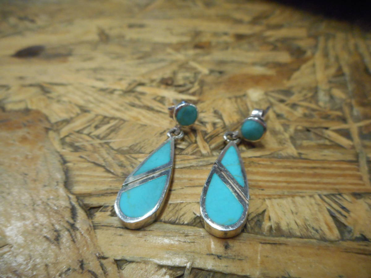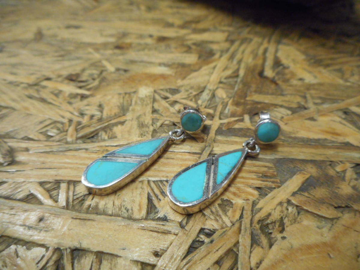 シルバー925.練り.ターコイズ.ピアス.セット.インディアン.ネイティブ.ドロップ.シンプル.デザイン.サーフ.レディース