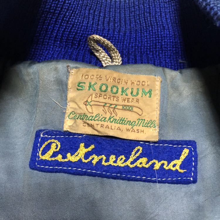 SKOOKUM スクーカム 60's 70's VINTAGE!! ビンテージ 袖革 スタジャン ジャケット 青