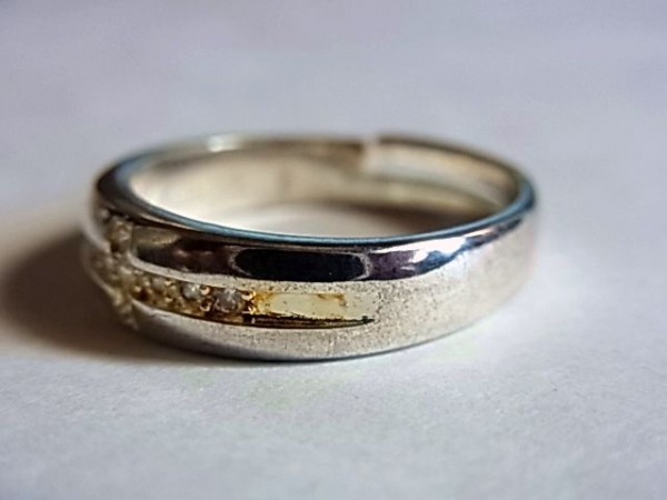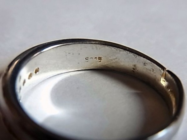 未使用品です。ノーブランドのリング(指輪)です。サイズは約13号です。素材はシルバー925です。クロス状にセッティングされている9粒の石はキュービックジルコニア(CZ 人工ダイヤ)です。部分的に金色の箇所があります。リング内側の刻印はS925ですが92の部分の刻印がきちんと刻印されていません。現在のサイズは約13号ですが大きいサイズへのサイズ調節がご自身でできるフリーサイズのリングです。男性ならピンキーリングにも良いと思います。以前新品で購入し保管していただけの商品です。最初から小キズやくすみや変色等はあります。付属品はありません。落札後の質問には一切回答しませんので、必ず落札前に不明な点は質問し不明な点を解消してから入札及び落札して下さい。