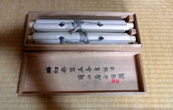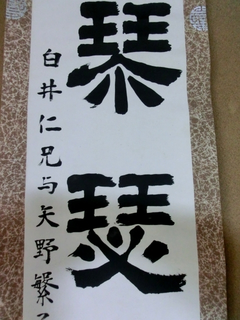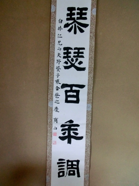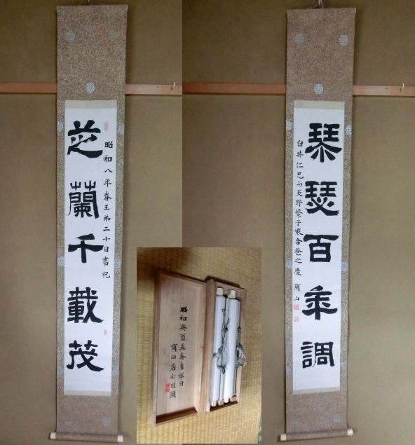 掛軸■「商山居士自題」字 二幅対 紙本 ?瑟?百調 白井仁兄寫矢野繁子嬢合?之慶 商山居士自題 昭和八年春王弟二十日書祝 蘭千載茂 箱入り 肉筆 古美術 時代物 骨董品■⑦