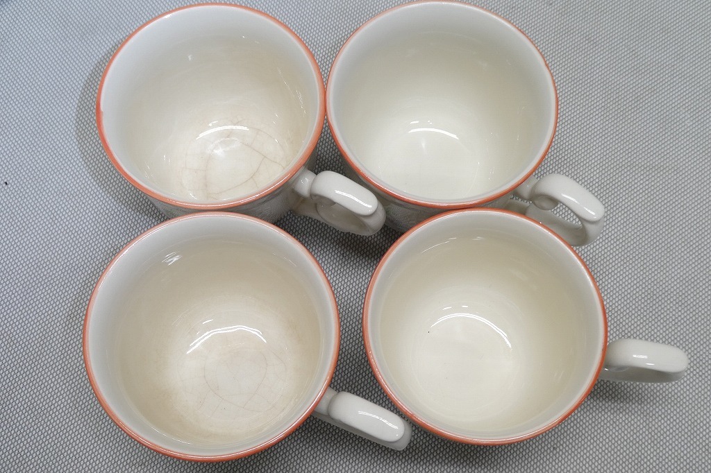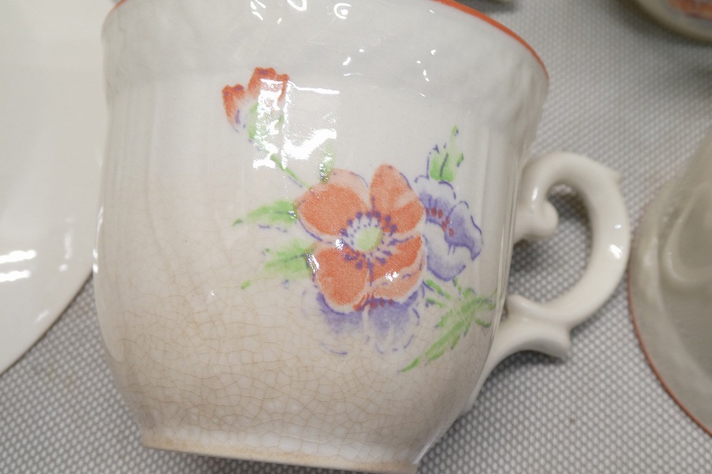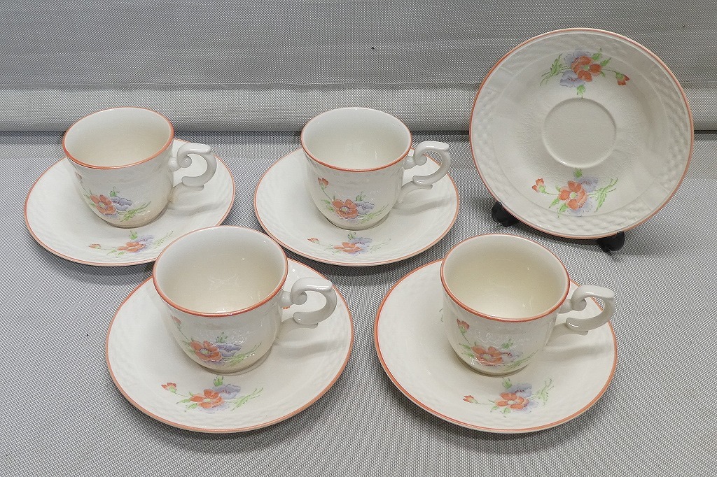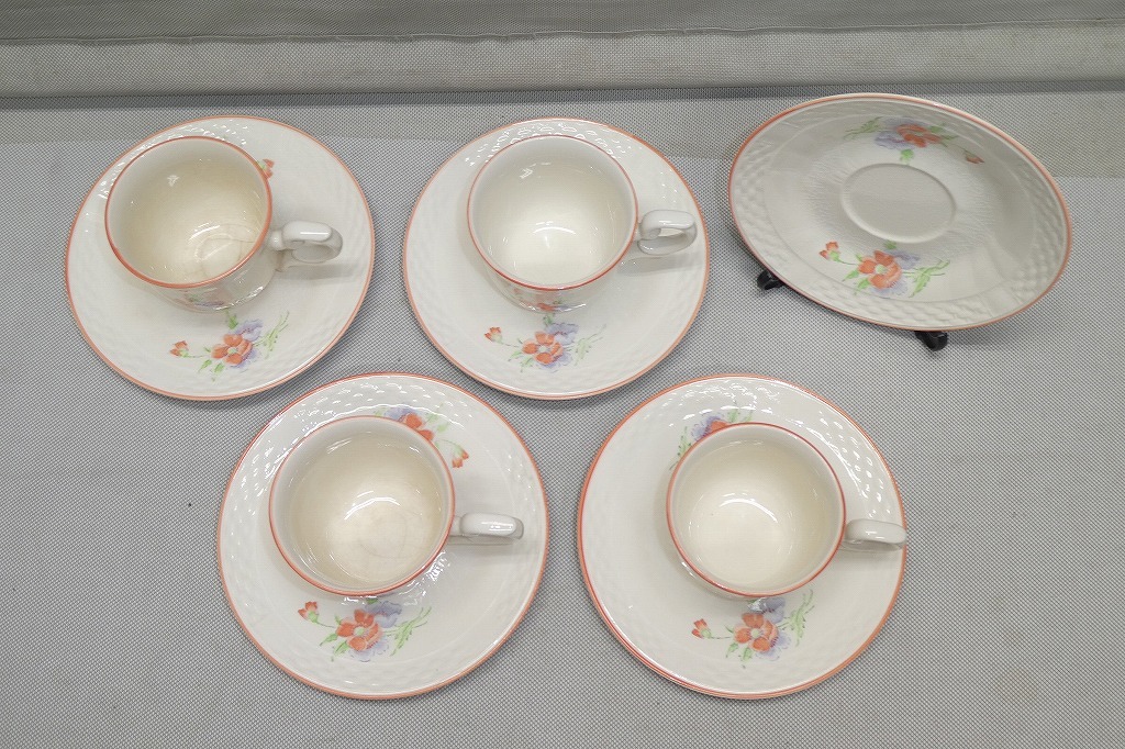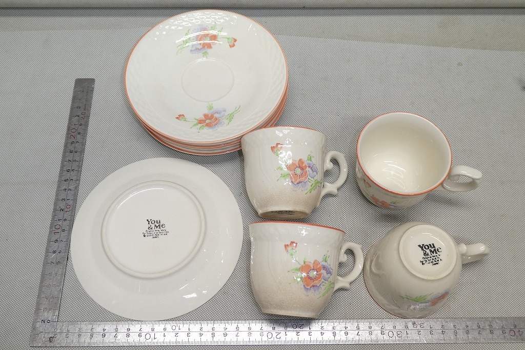 中古品の為、汚れ、傷、擦れ、変色、色褪せ、使用感等はあります。カップ4客、ソーサー5枚です。