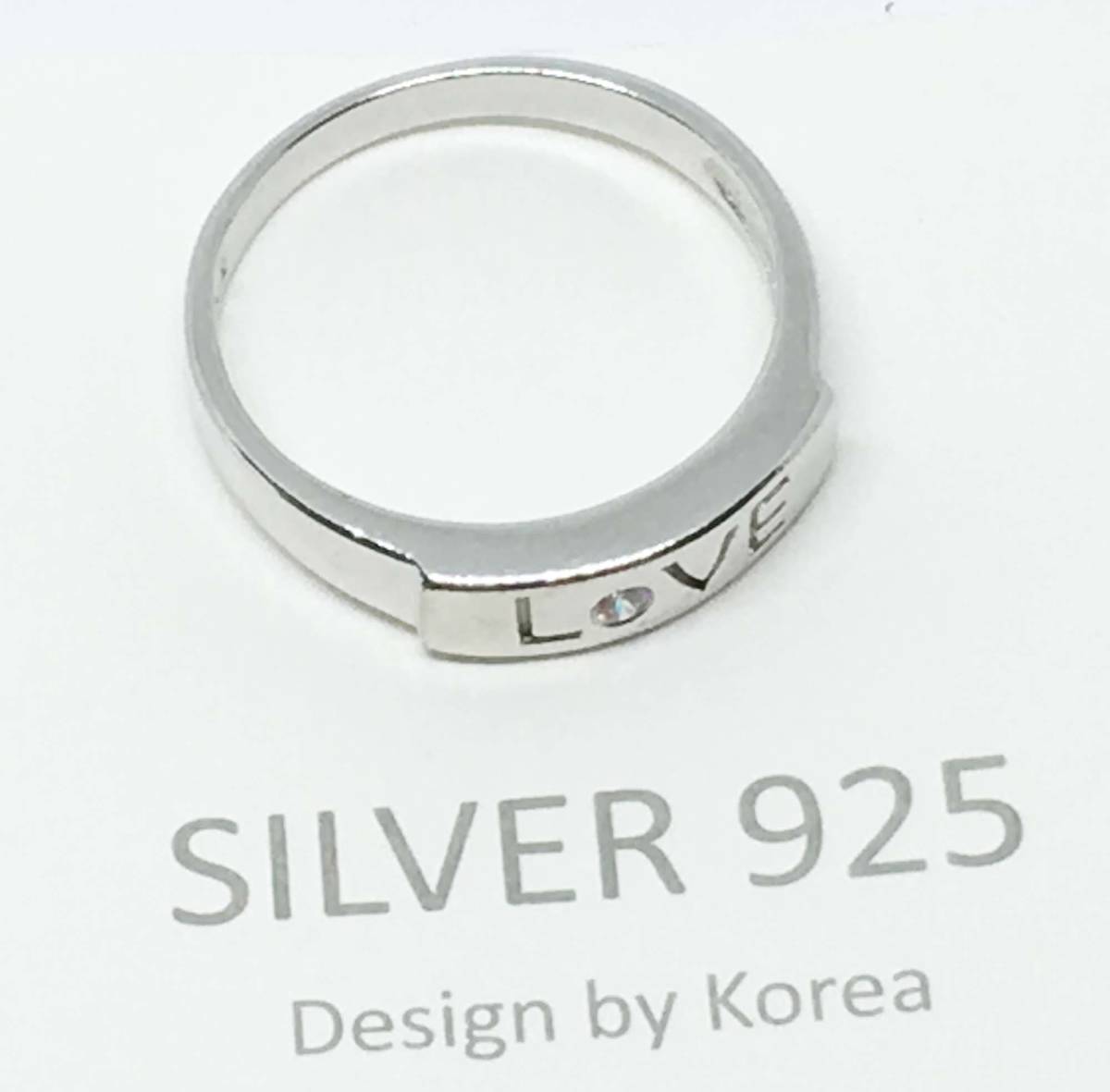 新品 韓国デザイン CZダイヤ LOVE 925シルバー銀製リング指輪 ♯17 メーカーサンプル No.Z1