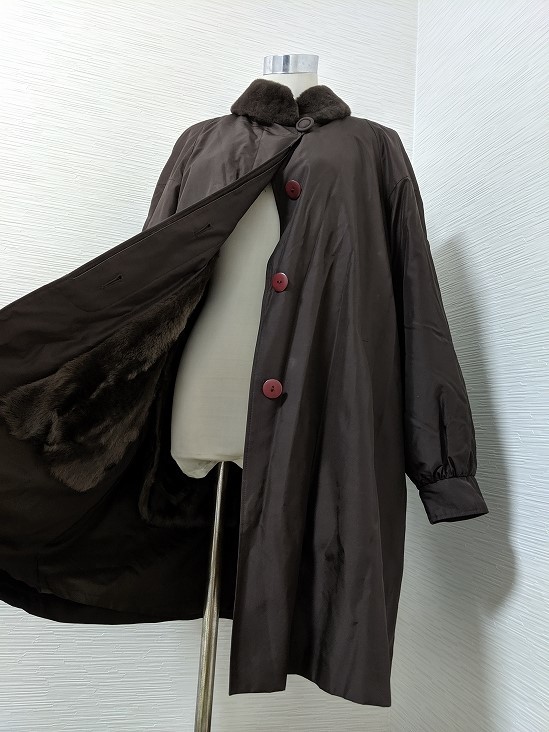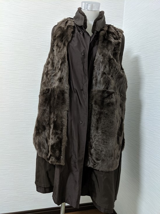 【送料無料】あ278 シルク 絹 リアルファー 毛皮 ヌートリア チキャンラムライナー ファーライナー 大きい ロングコート 軽い