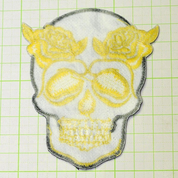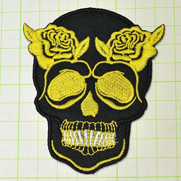 アイロンワッペン・パッチ サイケデリックスカル黒&黄 3 zq