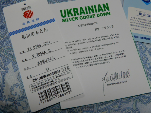 ☆羽毛掛けふとん ウクライナ産シルバーグースダウン☆ | |||