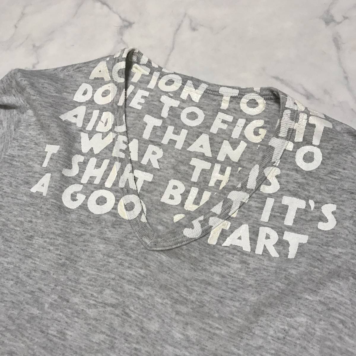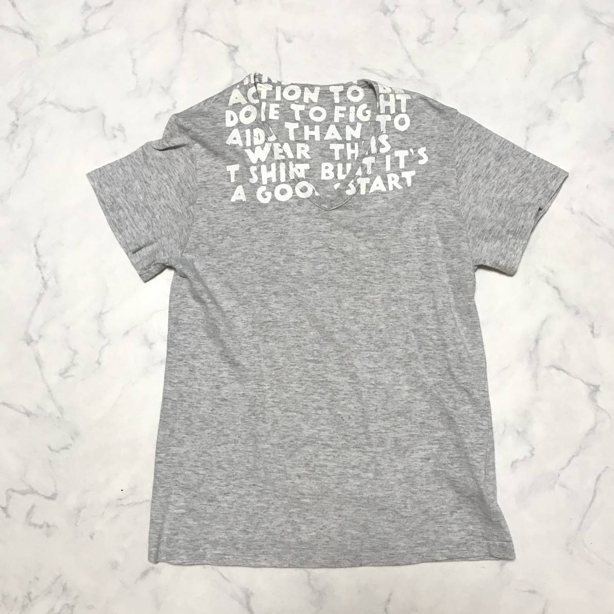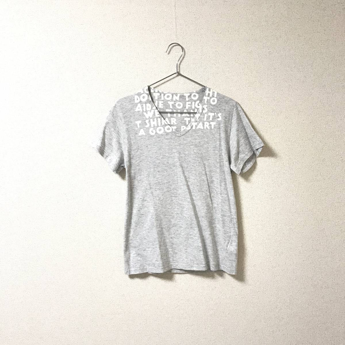 ★マルタンマルジェラ Martin Maegiela★メンズ Vネック エイズ 英字プリント Tシャツ ここのえ グレー size S