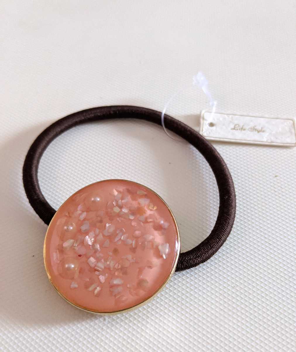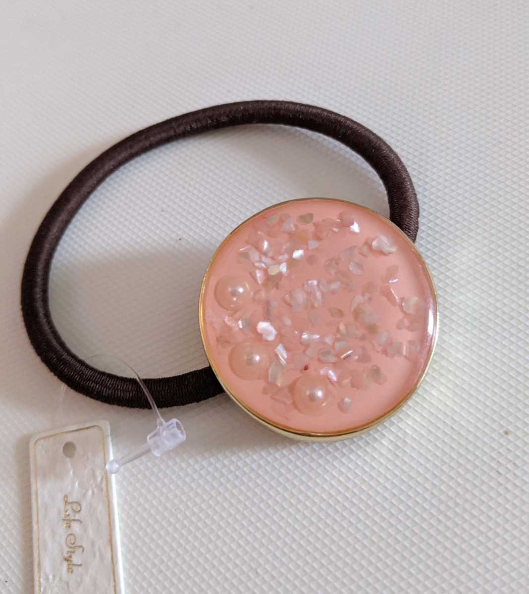 こちらは、パールビーズ キラキララメ ピンク ヘアゴム になります♪