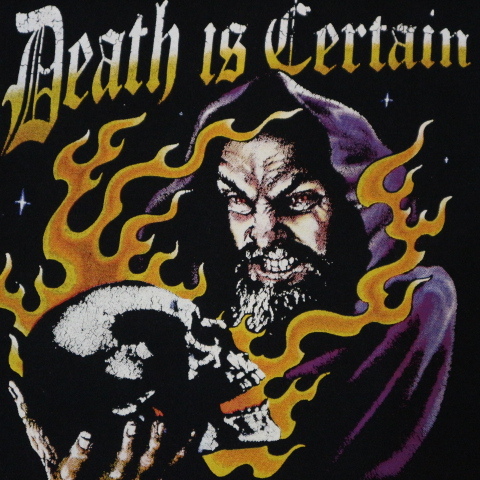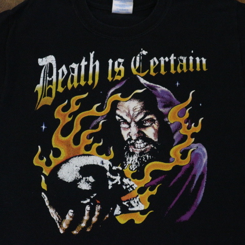 Death Is Certain Tシャツ S ブラック イラスト デビル タトゥー アート hiphop raptee バンド ロック USA古着