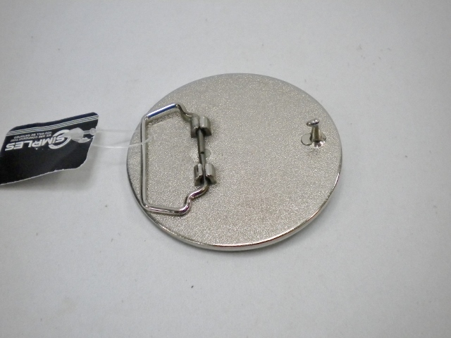 ★サイズは直径8cm。★素材は合金。★4cm幅のベルトが通ります。新品ですが展示品でしたので、多少の小傷はご了承ください。