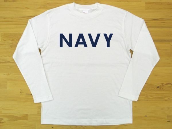 NAVY 白 5.6oz 長袖Tシャツ 紺 L ミリタリー ロゴ ネイビー 海軍