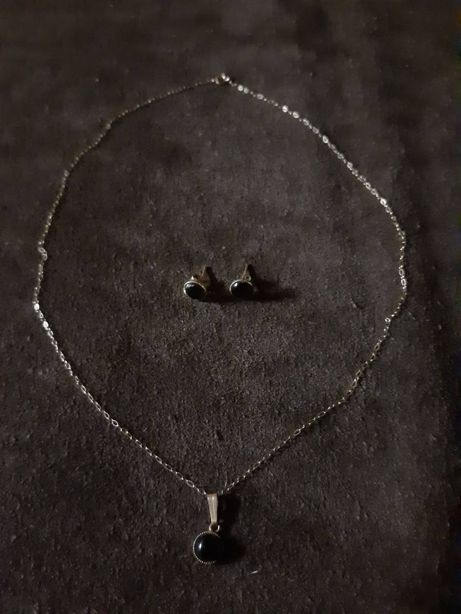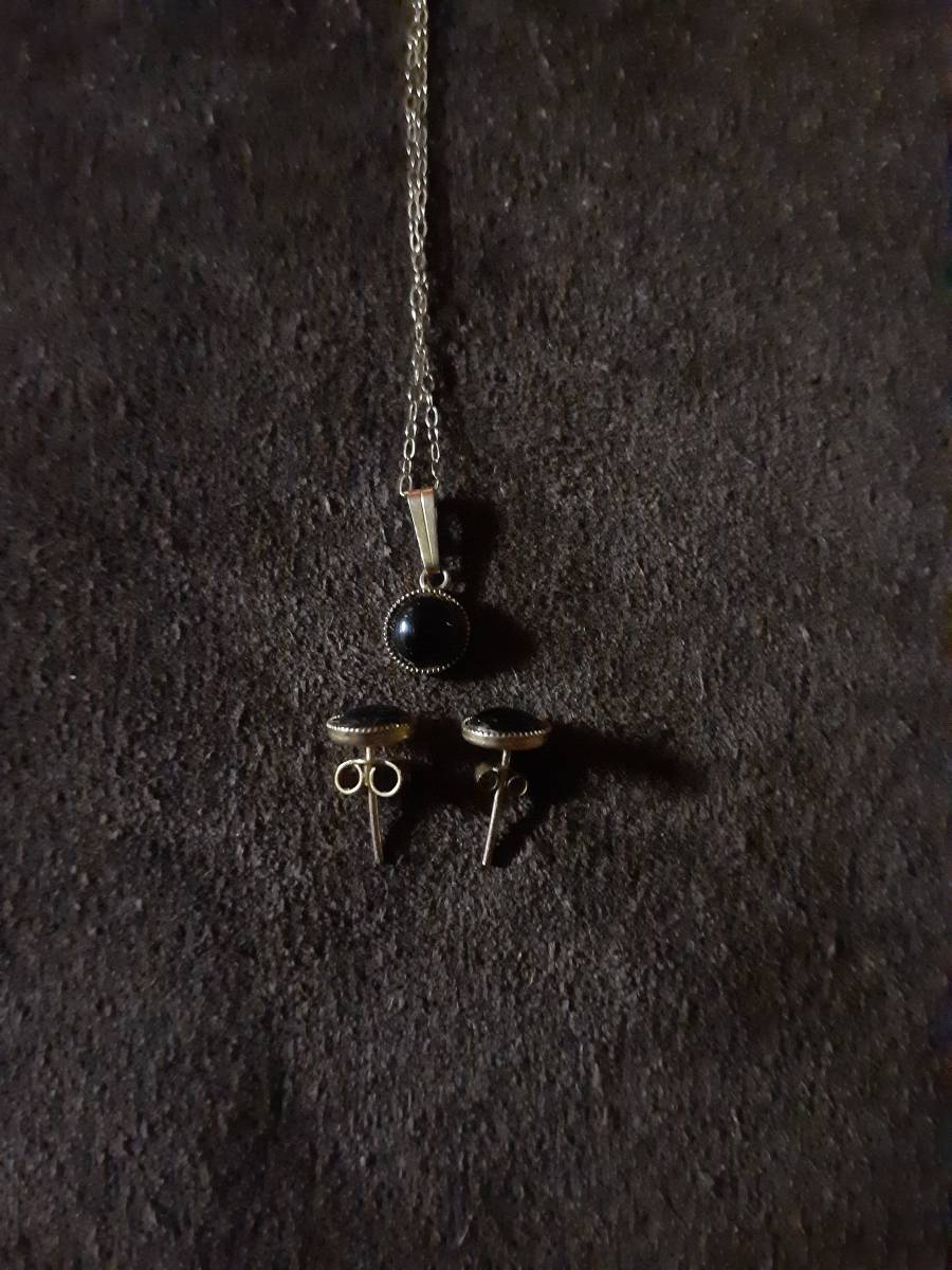 英国 1900年代初め頃の オニックスネックレスとピアス 希少品
