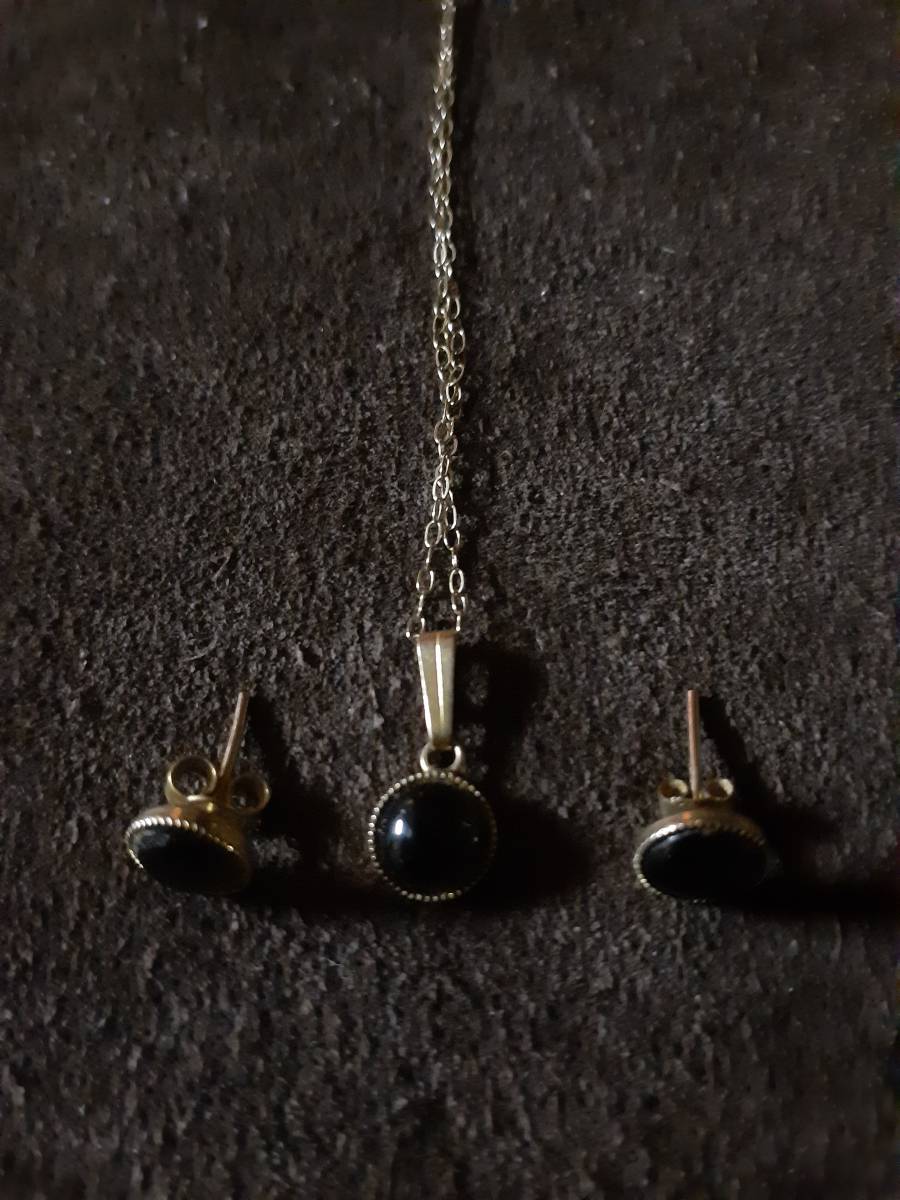 英国アンテーク ゴールド オニックスピアス と ネックレス