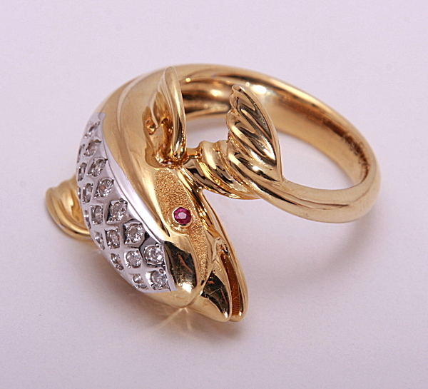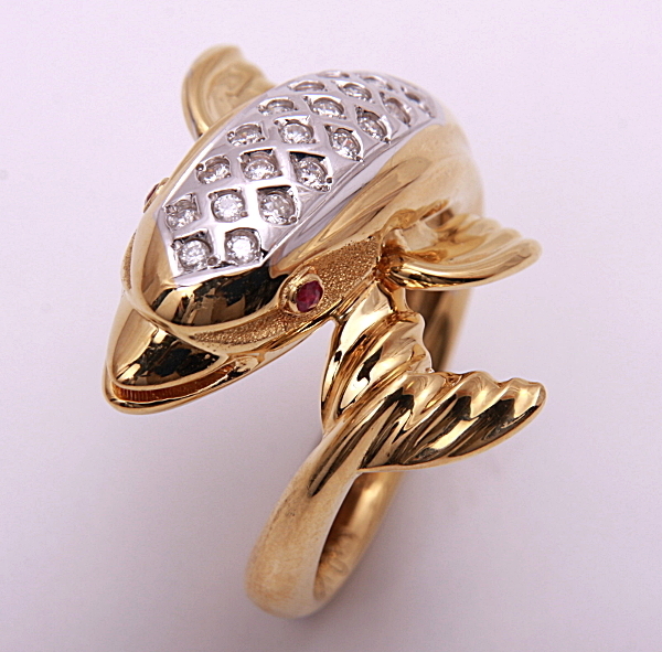 イルカが指に巻き付くようなデザインのリングです。