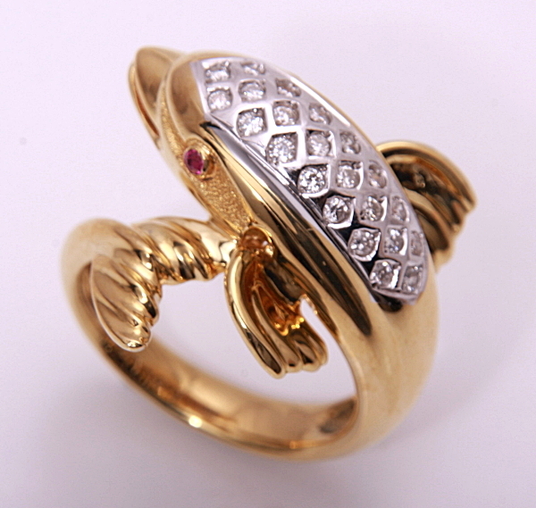 k18★天然ダイア0.22ctイルカモチーフリングです。