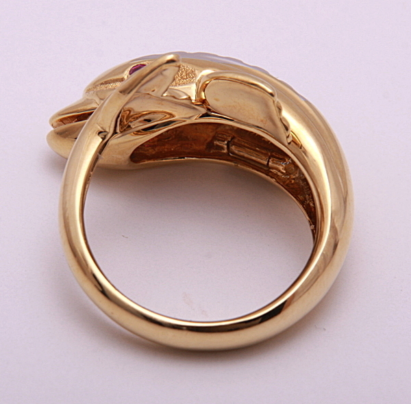 両目には小さなルビーと、頭から背中にかけてダイアが留められています。