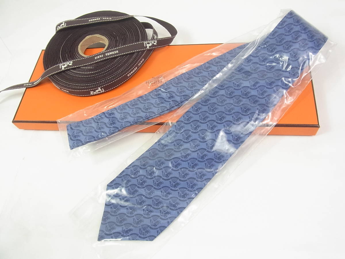 ■■エルメス★エールフランスコラボ新品シルクネクタイ(ブルー) お箱付き 贈答用にも■■