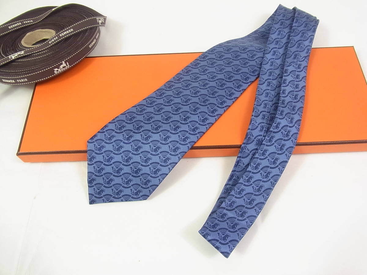 ■■エルメス★エールフランスコラボ新品シルクネクタイ(ブルー) お箱付き 贈答用にも■■26