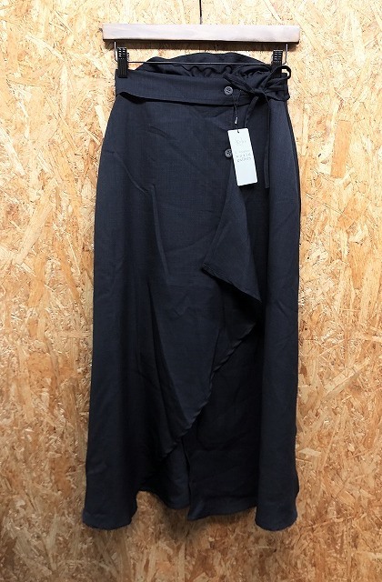 | 商品タイトル | E hyphen world gallery - F レディース 前フリルラップスカート 裏地付き ウエストゴム 無地 ロング ポリエステル100% ダークネイビー |