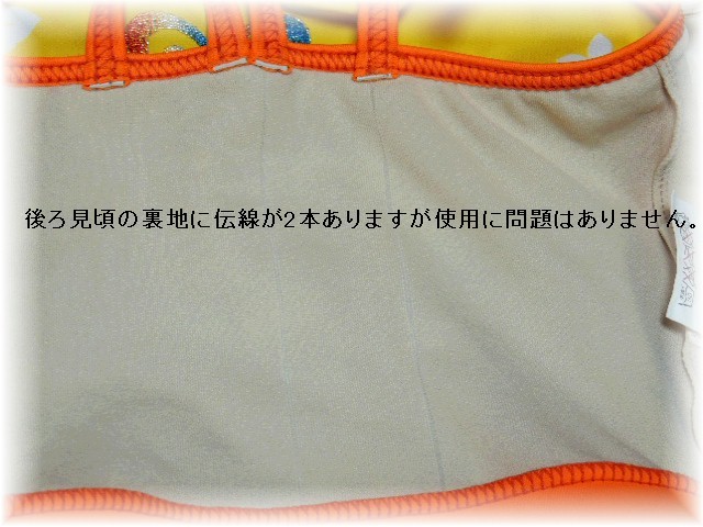 | =委託品= 中古品はクリーニング又はホームクリーニング済です。 新品・未使用品については現状のお渡しとなります。 保管の際のシワがございます。 ■■商 品 ラ ン ク■■ A0新品・未使用品です。 A1訳アリ新品・未使用品です。 B0未使用品に近い中古品です。 B1目立ったシミ・汚れ等が無い一般的な中古品です。 B2使用感(ヨレ)・毛羽立ち等あります。 B3薄め・小さめのシミ・汚れ・傷等があります。 B4目立ったシミ・汚れ・傷等があります。 B5ジャンク品です。 *注:感じ方には個人差がございます。 【レベル:B4】 前見頃オレンジライン部に黒い汚れがあります。 後ろ見頃裏地に伝線がありますが使用に問題はありません。 ヒップ部に毛羽立ちがあります。 ≪タグ表示≫ サイズ:120cm ≪平置きサイズ≫ 多少の誤差はご容赦下さる様お願いします。 身幅:約25cm ウェスト:約24cm ヒップ:約27.5cm 着丈:約35cm(背側中央部) ≪素材≫ ポリエステル80% ポリウレタン20% ≪色・柄≫ カラフルボーダー×花柄(白抜き) ≪お願いとご注意≫ ・新品・未使用品でも一度は人手に渡った物ですので完璧を求める方はご入札をご遠慮下さい。 ・お振込み手数料はご負担下さいます様お願いします。 ・仕事・家事の合間で作業をしておりますのでお急ぎの方のご入札をご遠慮下さい。 ・ご入金確認のタイミング(夜の確認)により発送が1~2日程遅れる場合がございます。 ・頂いた個人情報はお取引後すみやかに削除させて頂きます。 ・土日祭日の発送は郵便局都合によりお休みします。 ・フラッシュやPC環境により色が違う場合がございます。 ・喫煙者おりません。ペット(猫)がおります。 ・評価はご指示がない限り商品受け取り完了のお知らせ後にさせて頂いております。 ≪不要の方はお手数おかけしますがメッセージをお願いします。≫ | |||