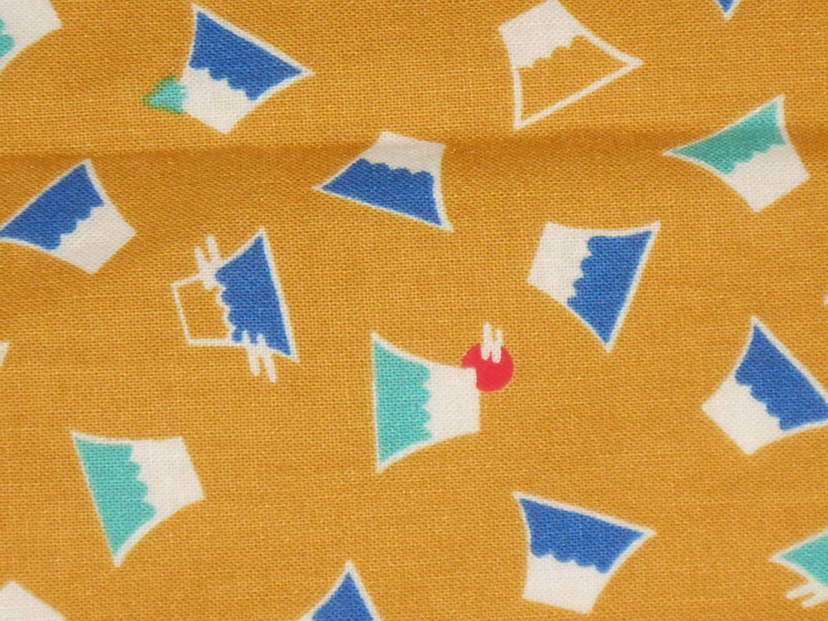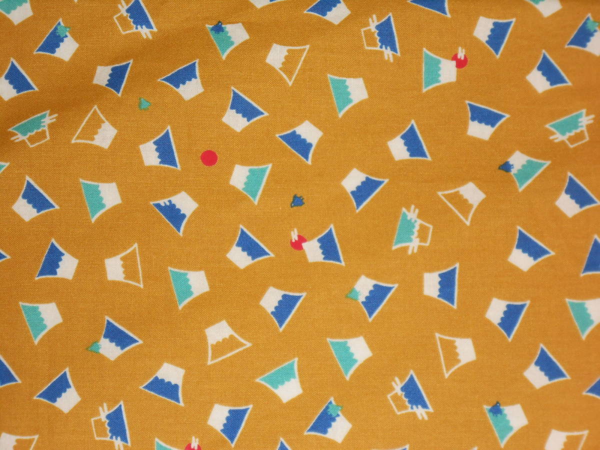 手作り、綿100%、105㎝の風呂敷、可愛い富士山、からし色