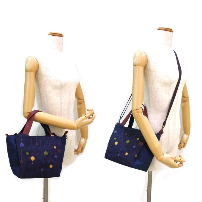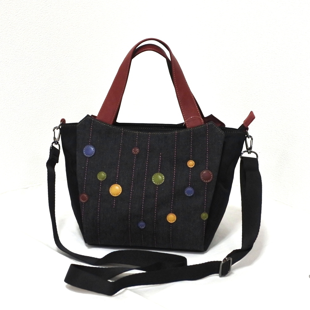 丸いパッチがキュートな2wayのバッグです。