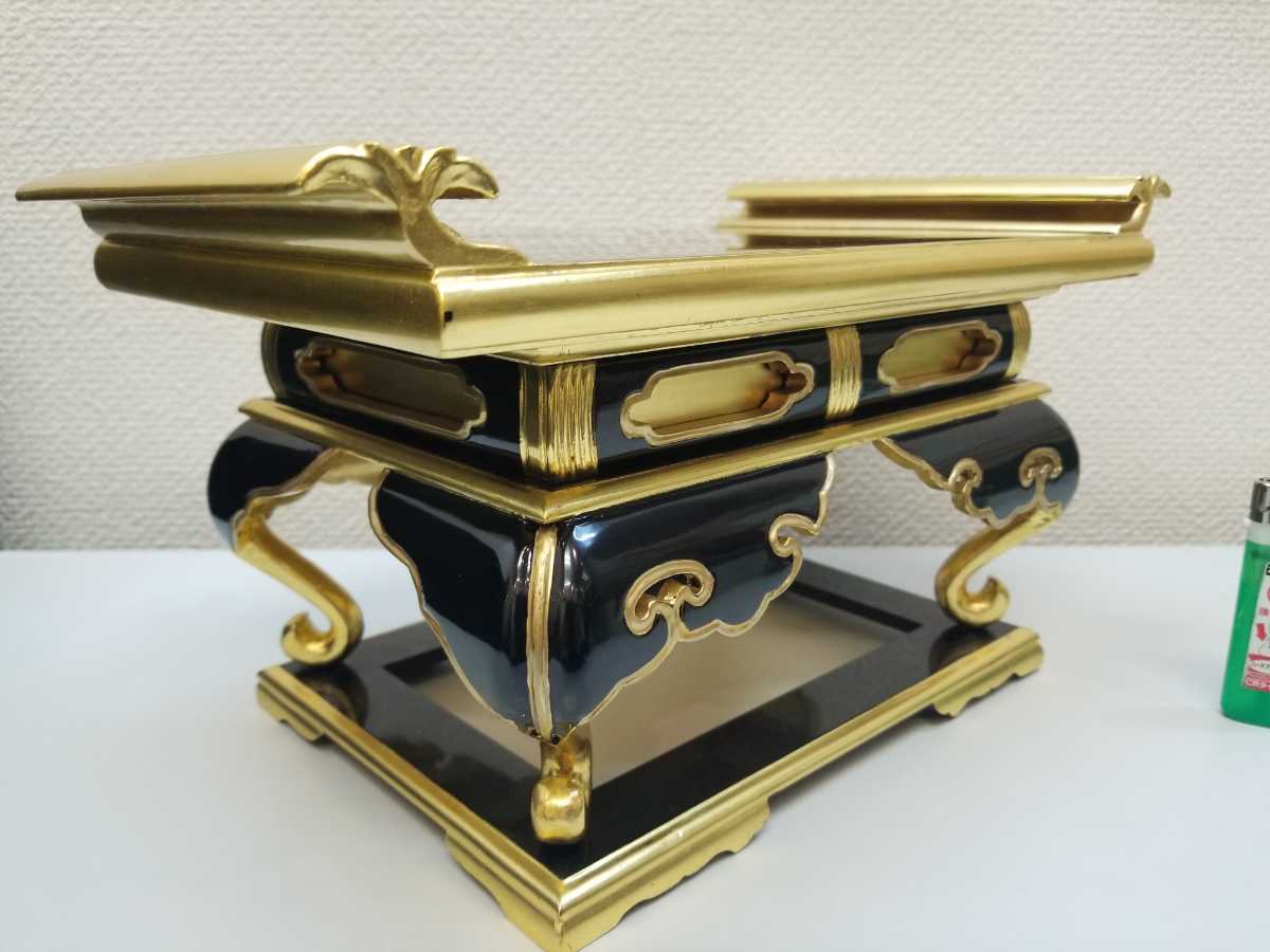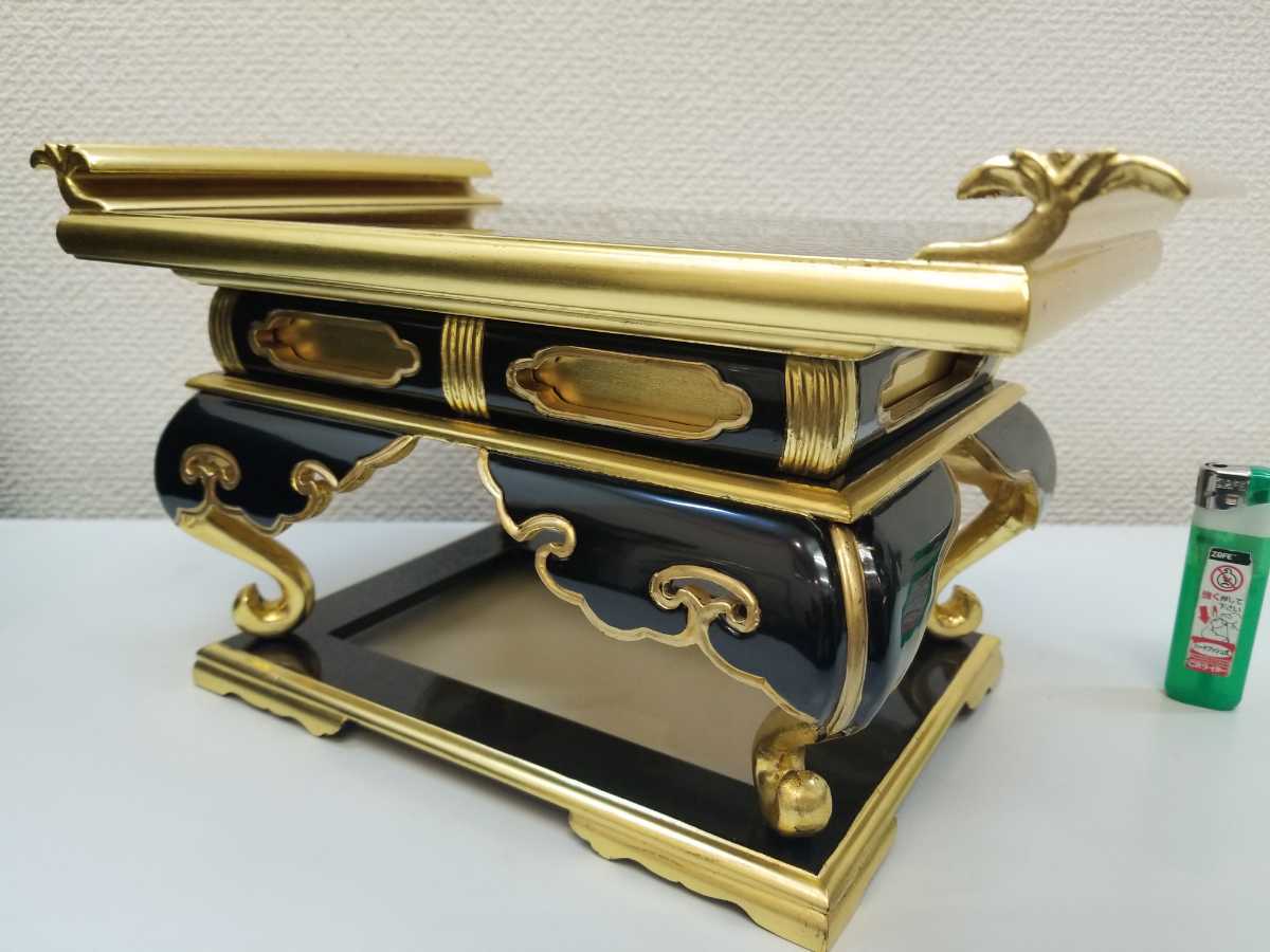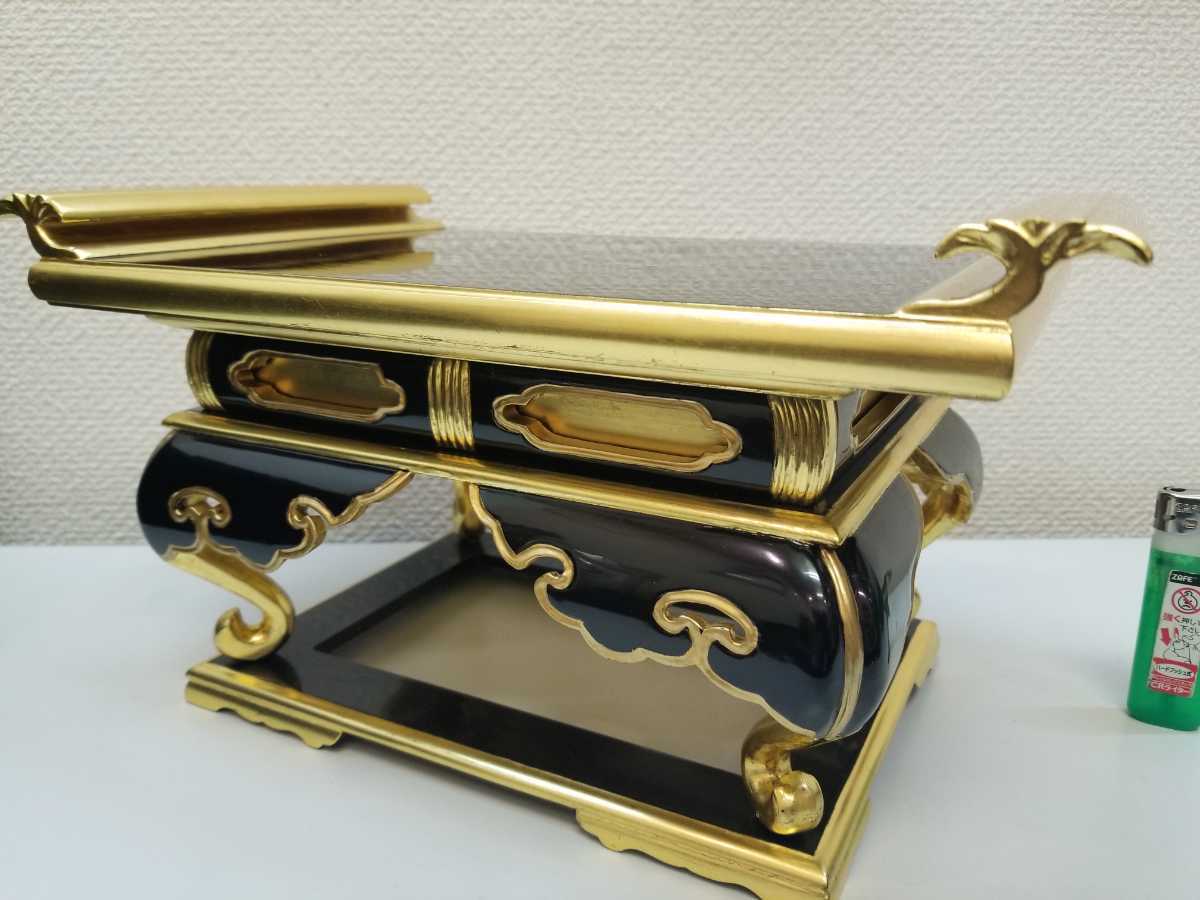 和讃卓 大阪 黒塗面金 四方面 猫足 裏金箔 木製 大 天板巾282ミリ 在庫整理 アウトレット デッドストック 東本願寺