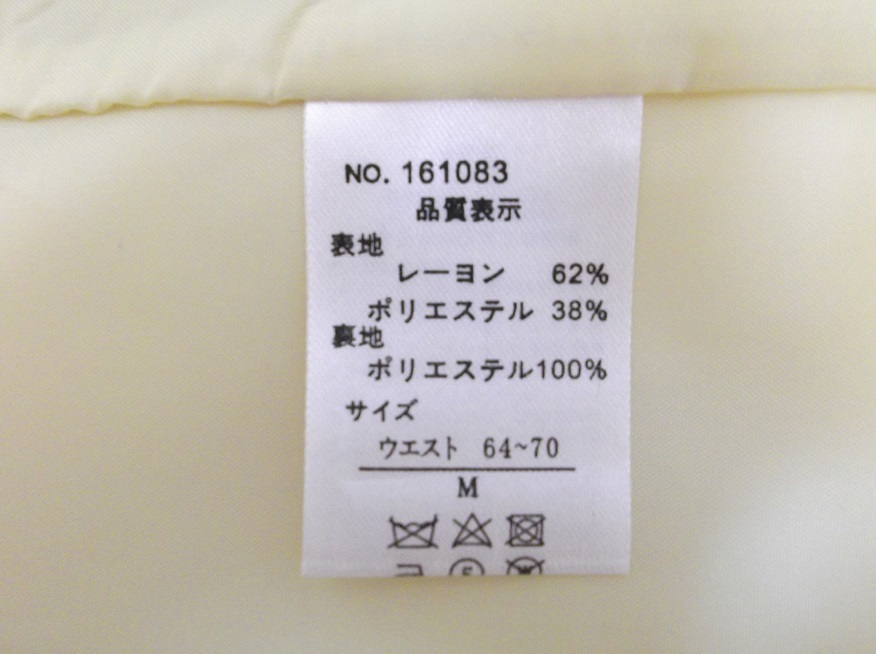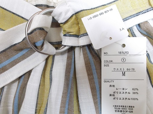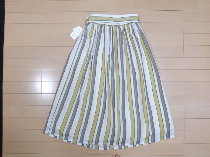オフホワイト地に、カラシ黄色・水色・ブラウンのストライプがとても上品爽やかで、とっても素敵なスカートとなっております。
