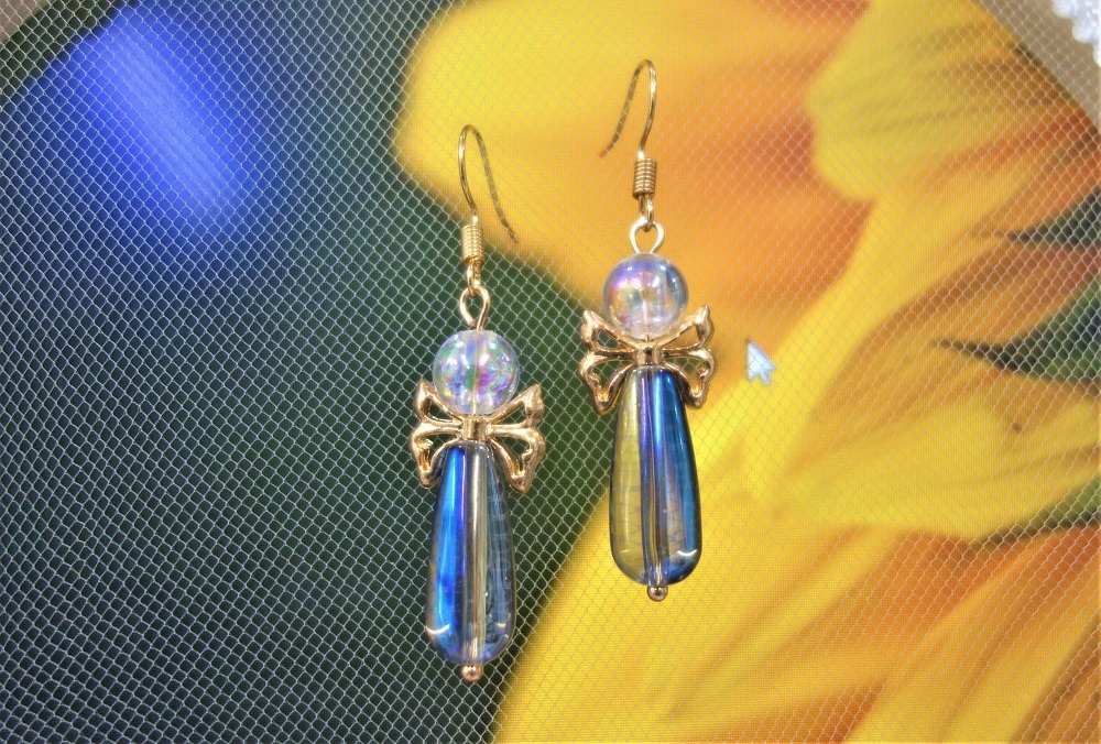 【天使をイメージしたピアス/オーロラカラーピアス】送料無料/ハンドメイドアクセサリー