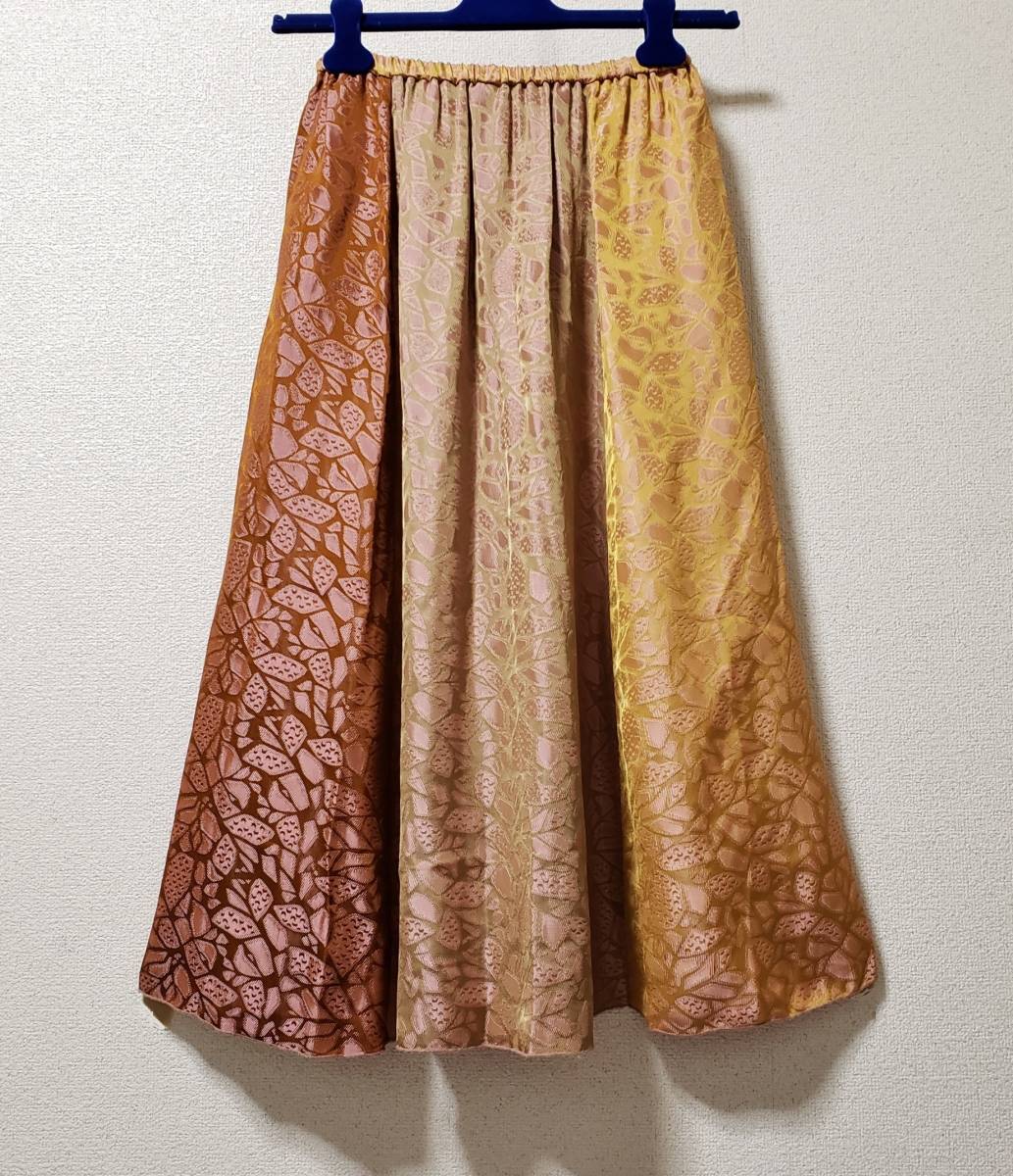 透け感の無いなめらかなジャガード生地です。ウエストは総ゴムでラフに着れます。