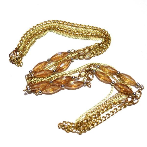 ・スウェーデンから買い付けたヴィンテージネックレスです。3本のネックレスで構成されたネックレスです。メインの一番太い喜平ネックレスにはビーズがセットされており、アクセントになっています。