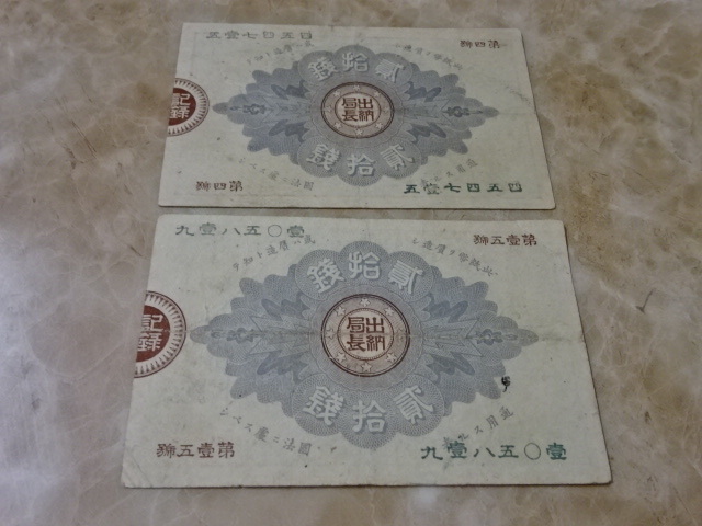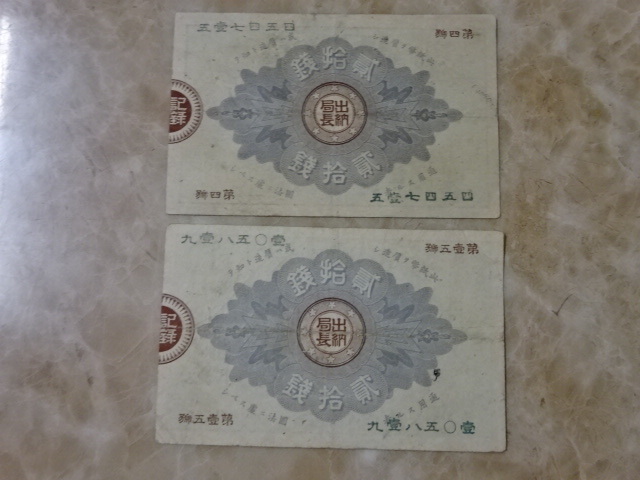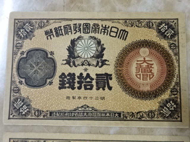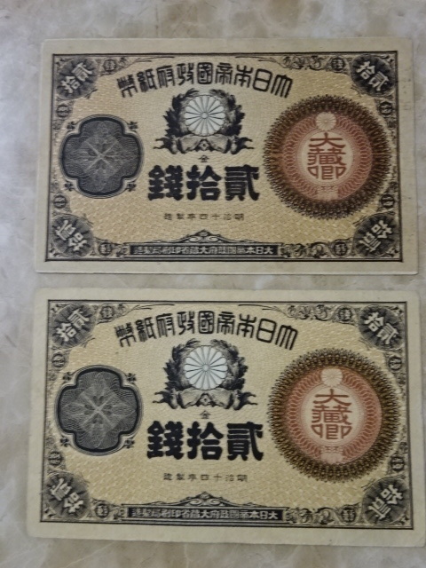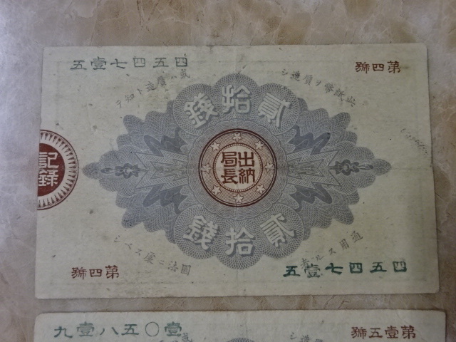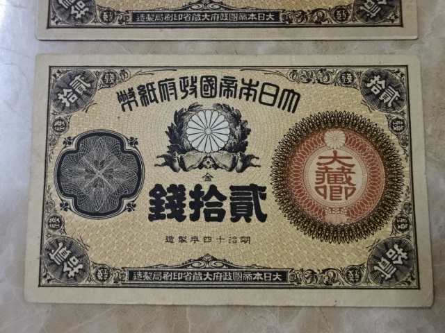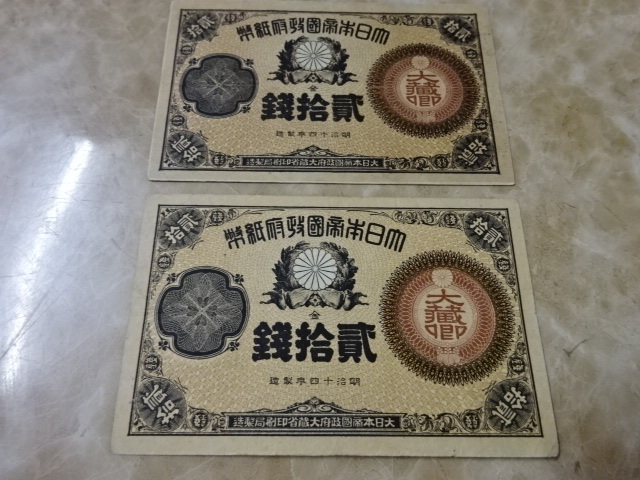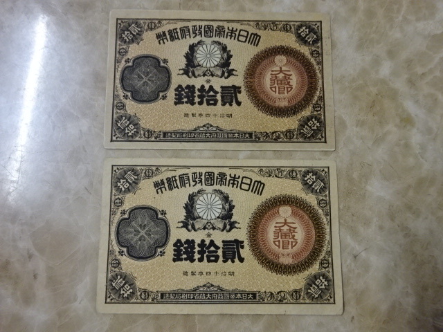 ★ 改造紙幣20銭 大蔵卿20銭 極美品 2枚セット ★ No.151