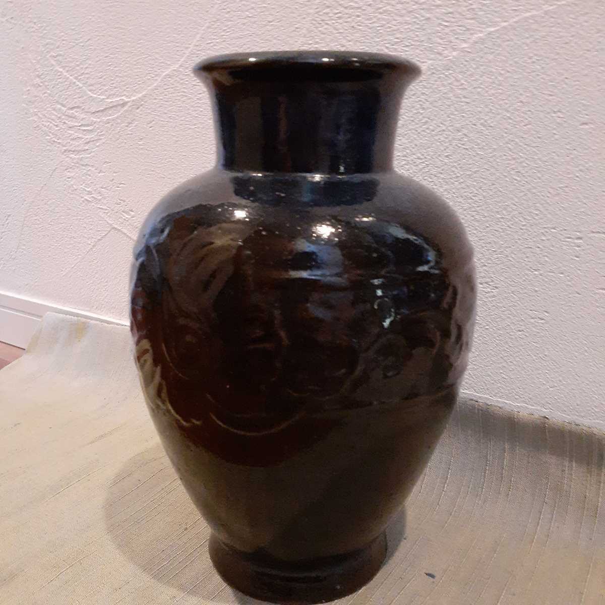 時代 萬祥山窯 藍色 飾壺 花瓶 約28.5cm×16cm