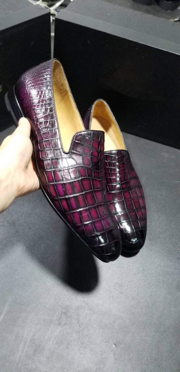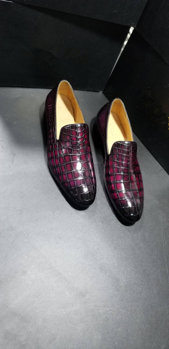 本物のワニ革を使用し、使い込むことにより味が増し、深みのある色に変化していくので光沢の変化も楽しめます。