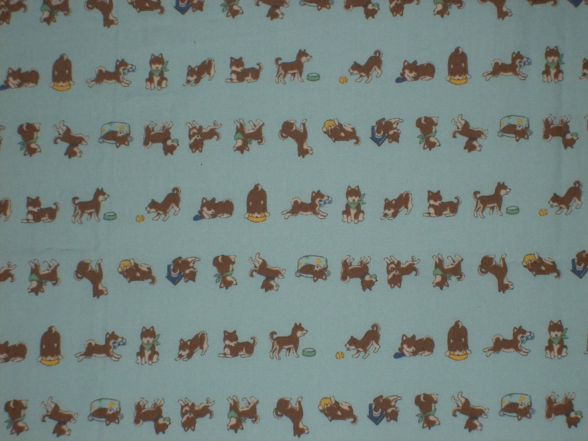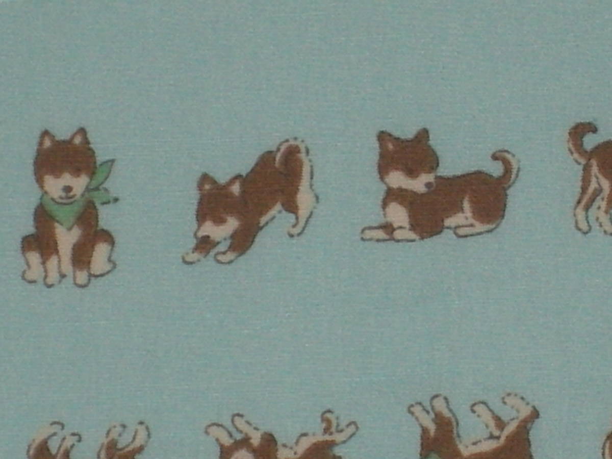 手作り、綿100%、85㎝の風呂敷、はしゃぐ犬、ブルー