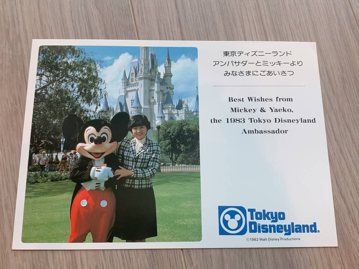 1983年、東京ディズニーランドグランドオープンを記念して作られた、初代アンバサダー とミッキーの写真つき、グリーティングカード、非売品。