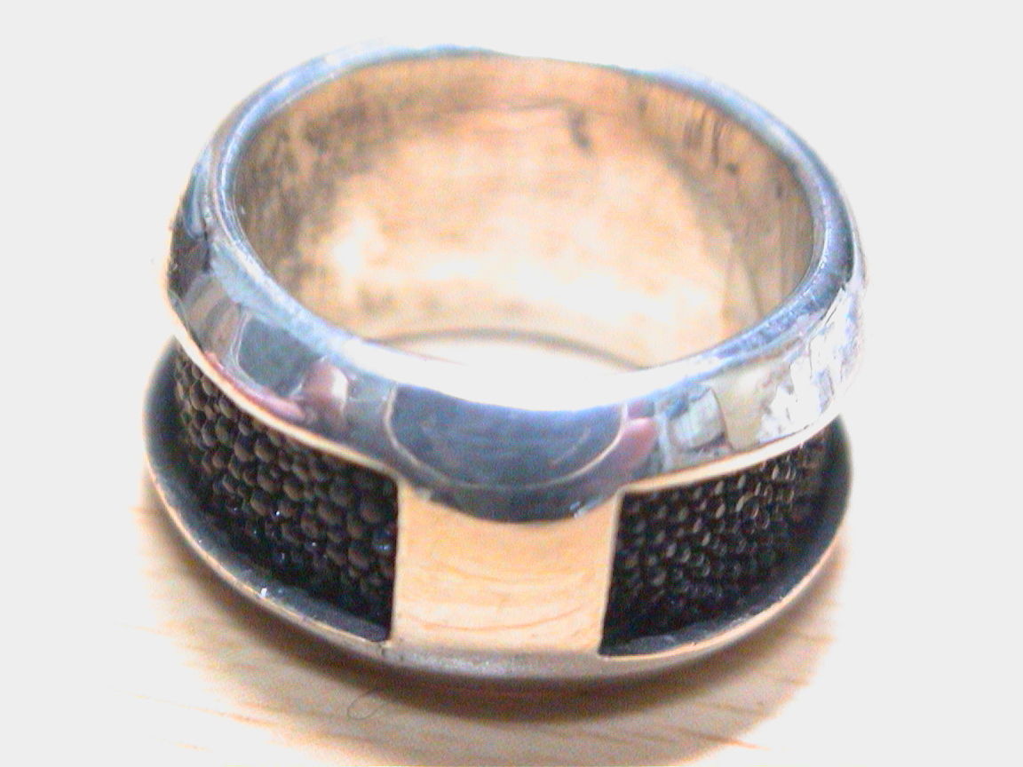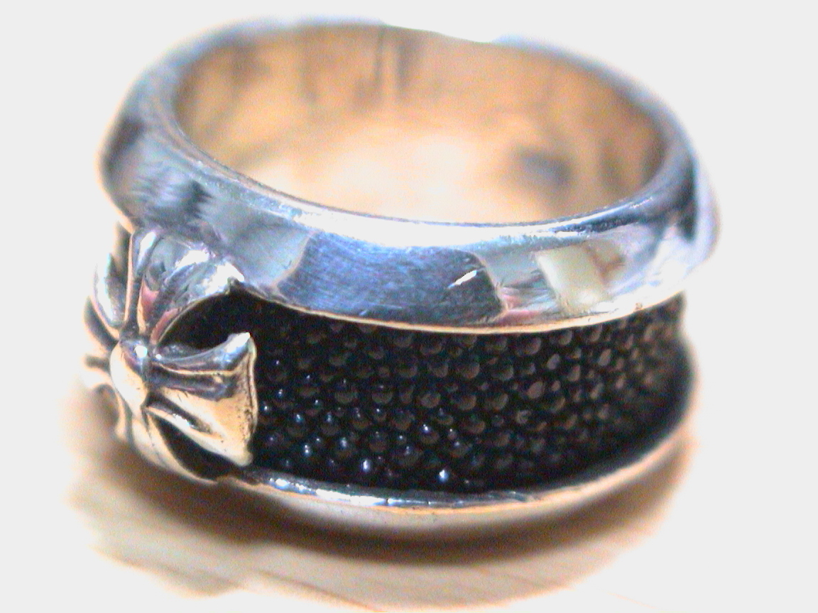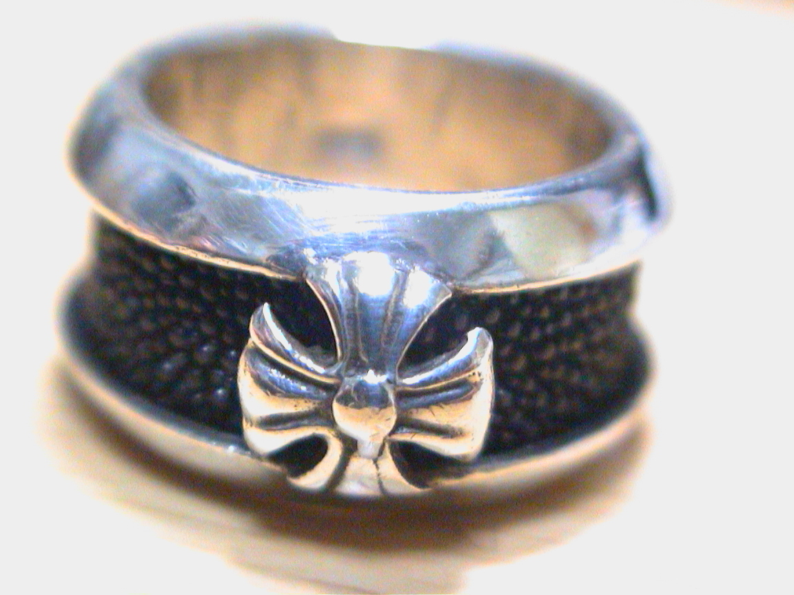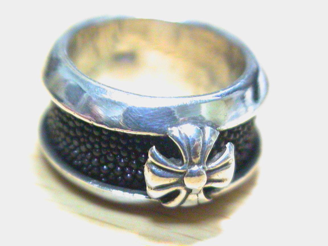 925シルバー製クロスデザインリング(スティングレー・エイの革)13号新品。