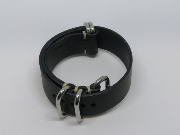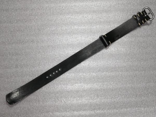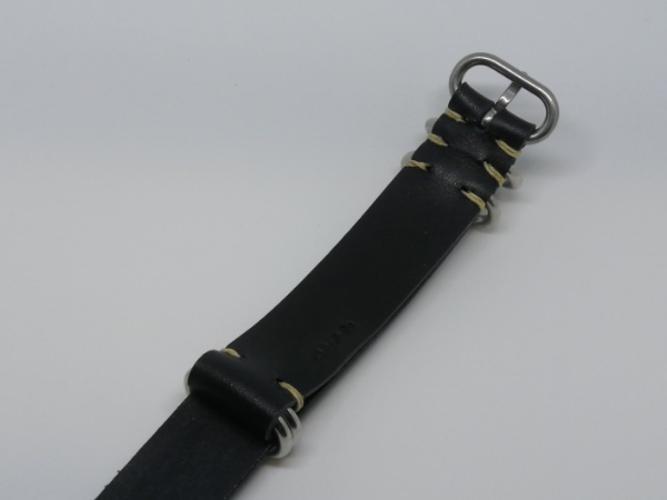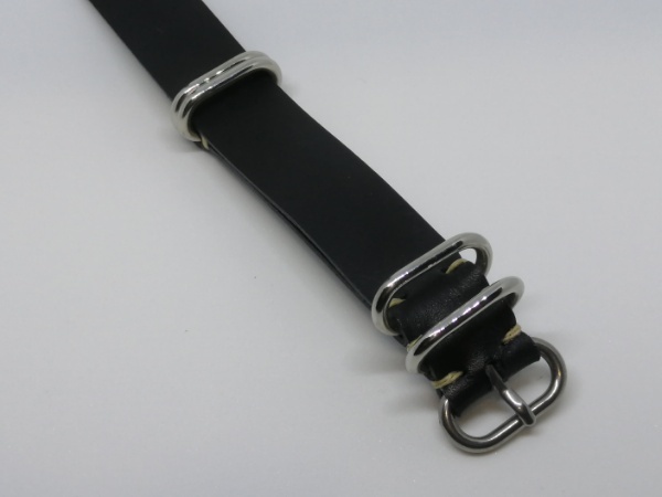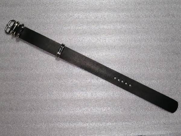 20mm NATOタイプ本革バンド 5ring 腕時計ベルト サドル 黒 ステンレス