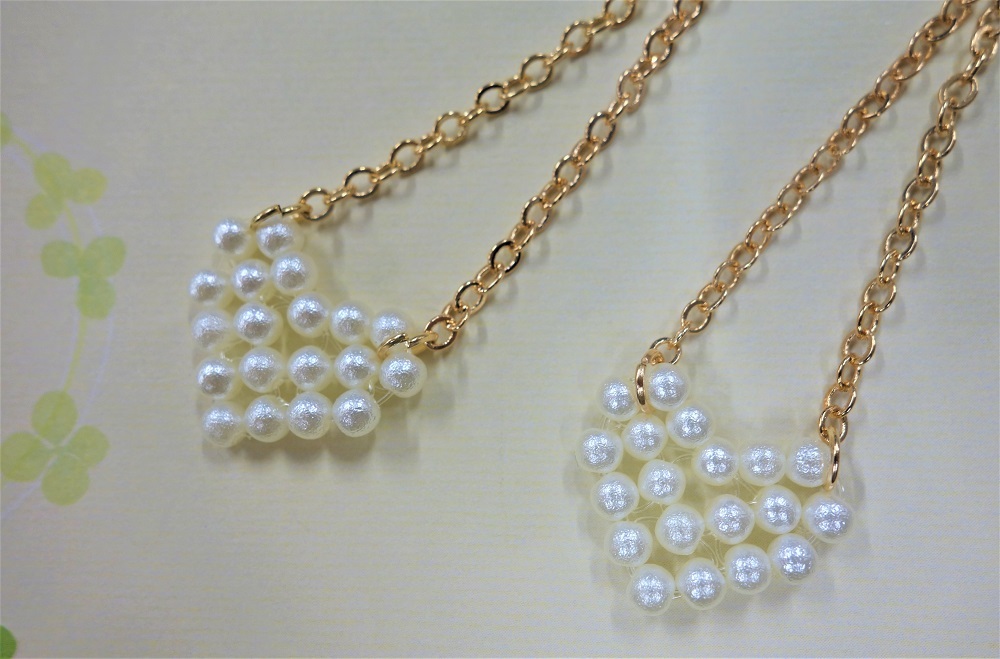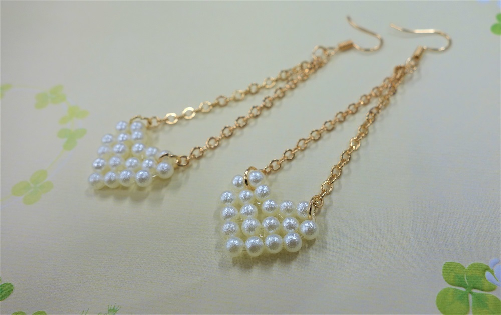 【パールビーズ、ハートピアス】送料無料/ハンドメイドアクセサリー