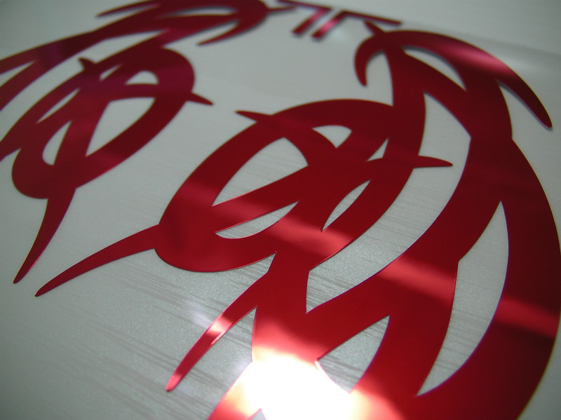 カッティングタイプの鏡面トライバルステッカーです。風雨はもちろん紫外線・海水にも強いステッカーで、屋外で5年の耐久性があります。(http://www.be-sticker.com/では他のステッカーもご覧いただけます)