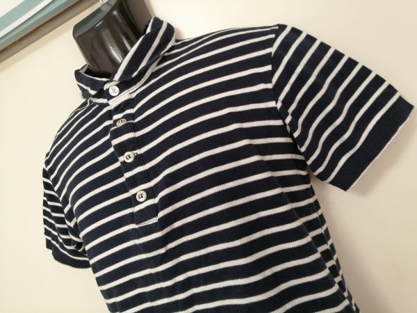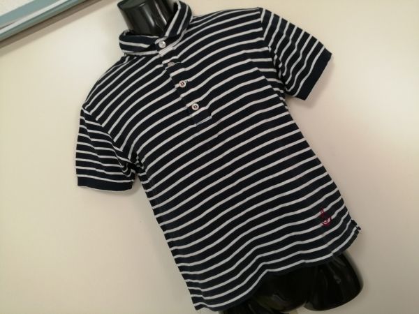 kkyj4029 ■ RAGEBLUE ■ レイジブルー ポロシャツ カットソー トップス 丸襟 ボーダー マリン 鹿の子 コットン 濃紺×白 ダークネイビー M
