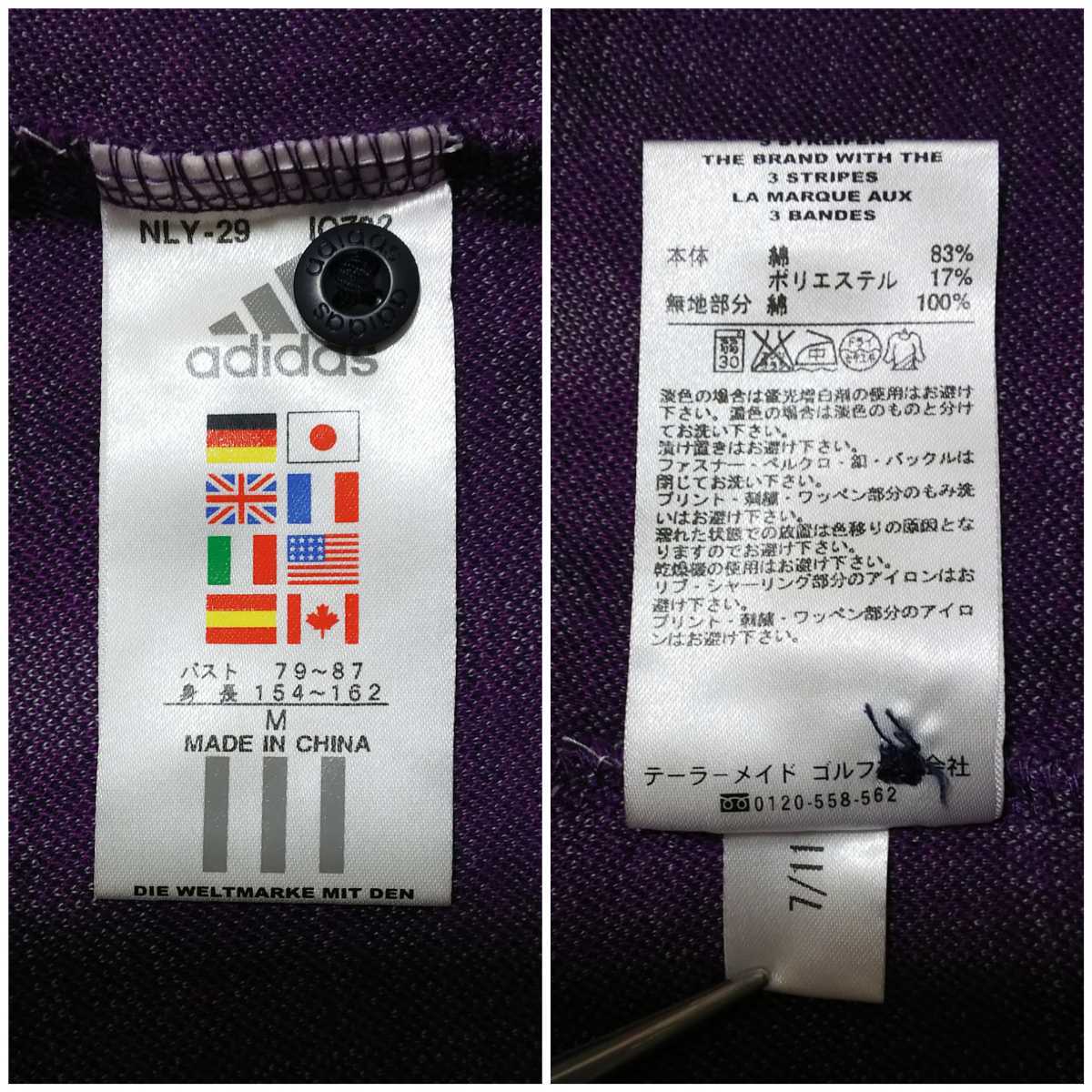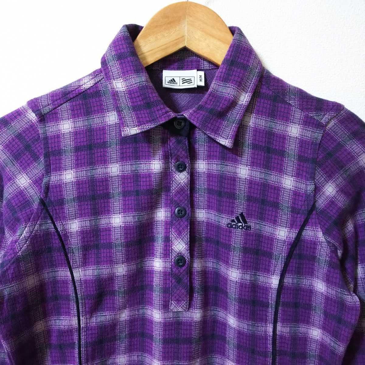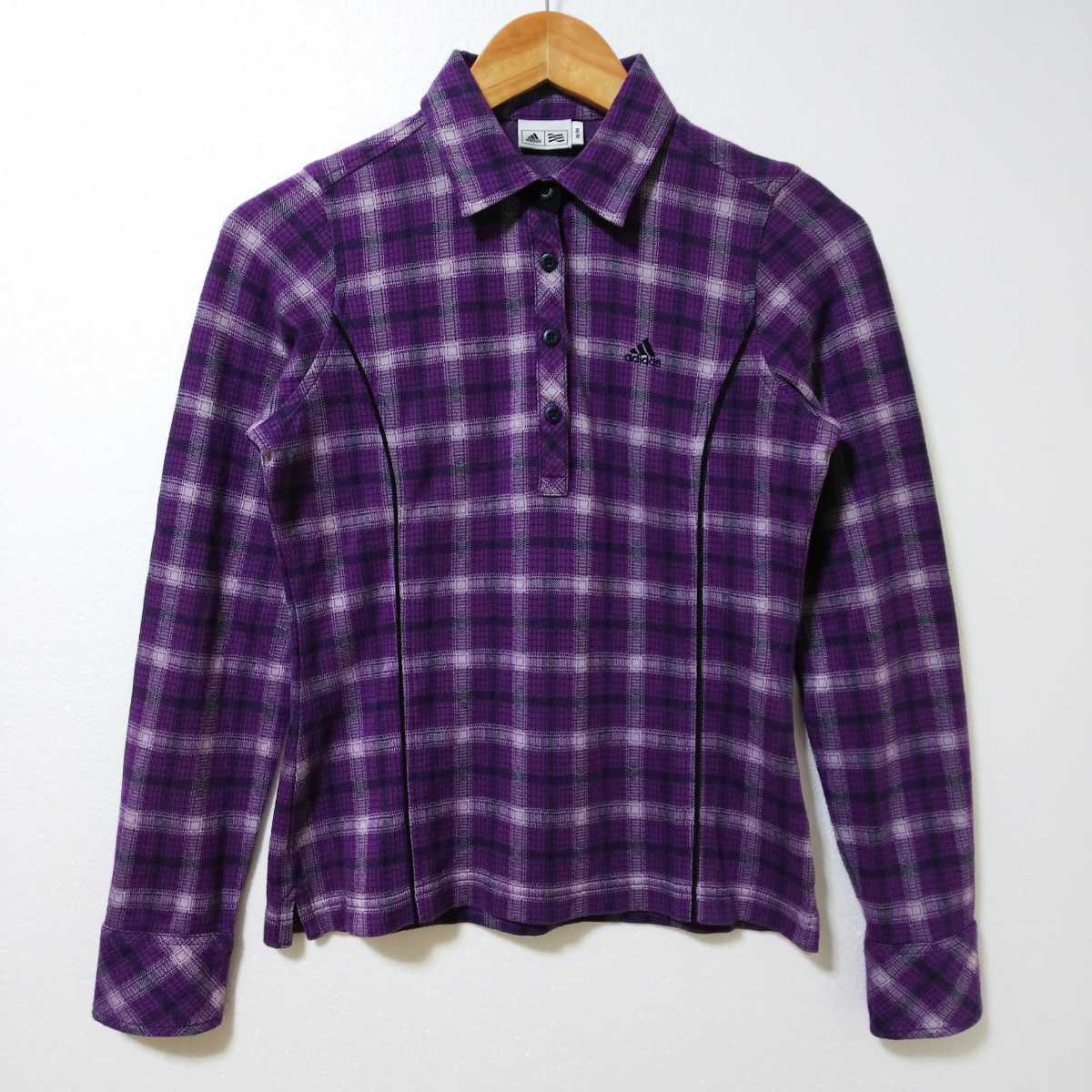 【ゴルフ】adidas アディダス テーラーメイドゴルフ 長袖ポロシャツ レディース Mサイズ パープル チェック柄 刺繍ロゴ | |