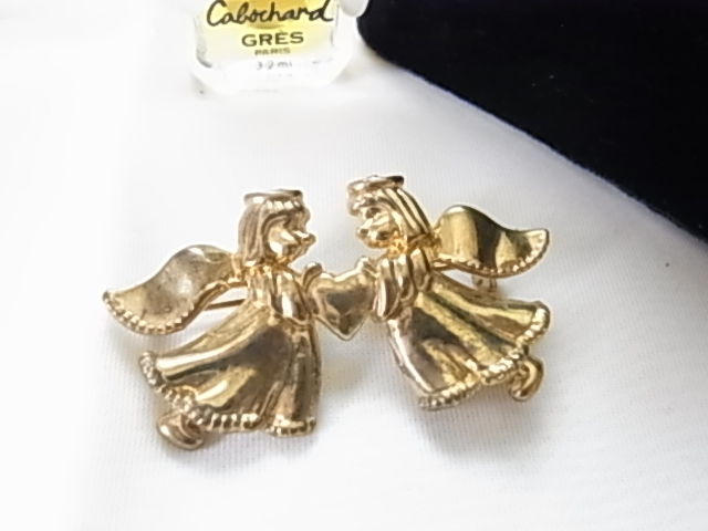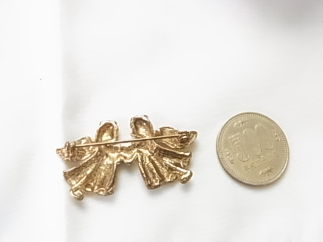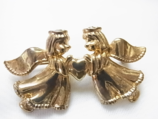 可愛い天使 エンジェルのモチーフデザイン 天使が2人 向かい合ってハートを抱えるデザイン キュート ブローチ▲
