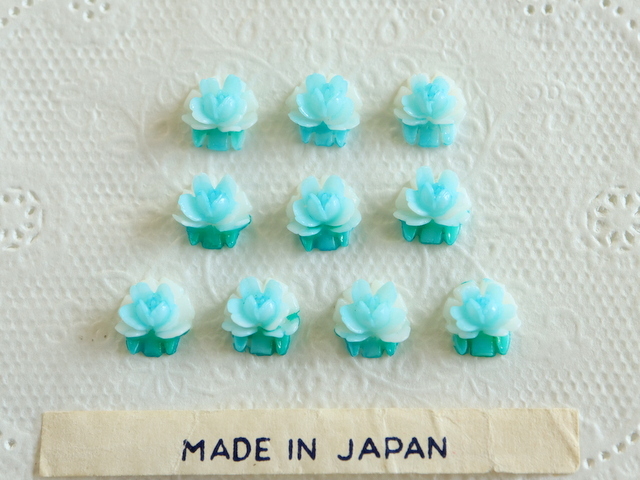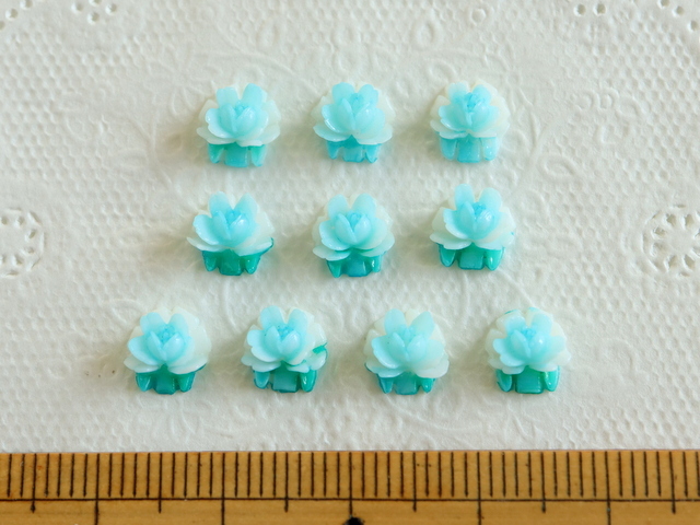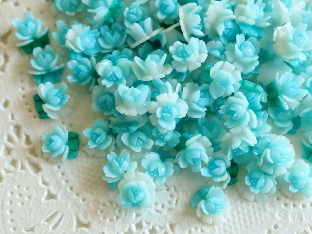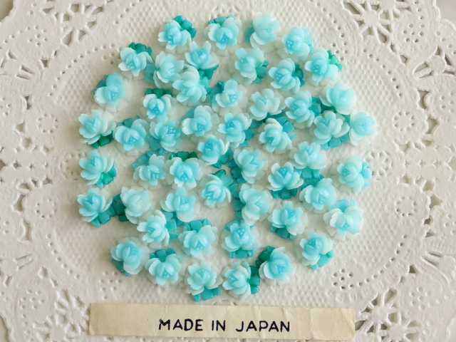 ☆送料無料☆ ブルー 水色 ローズ バラ フラワー 花 ジャパン ヴィンテージ カボション 日本製 ハンドメイド パーツ 8mm 50個 大量 セット